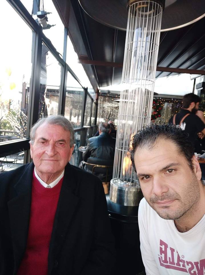 Στη φωτό, μαζί με τον γιό του, γνωστό συμπολίτη στον Πύργο, Παναγιώτη Παναγούτσο.