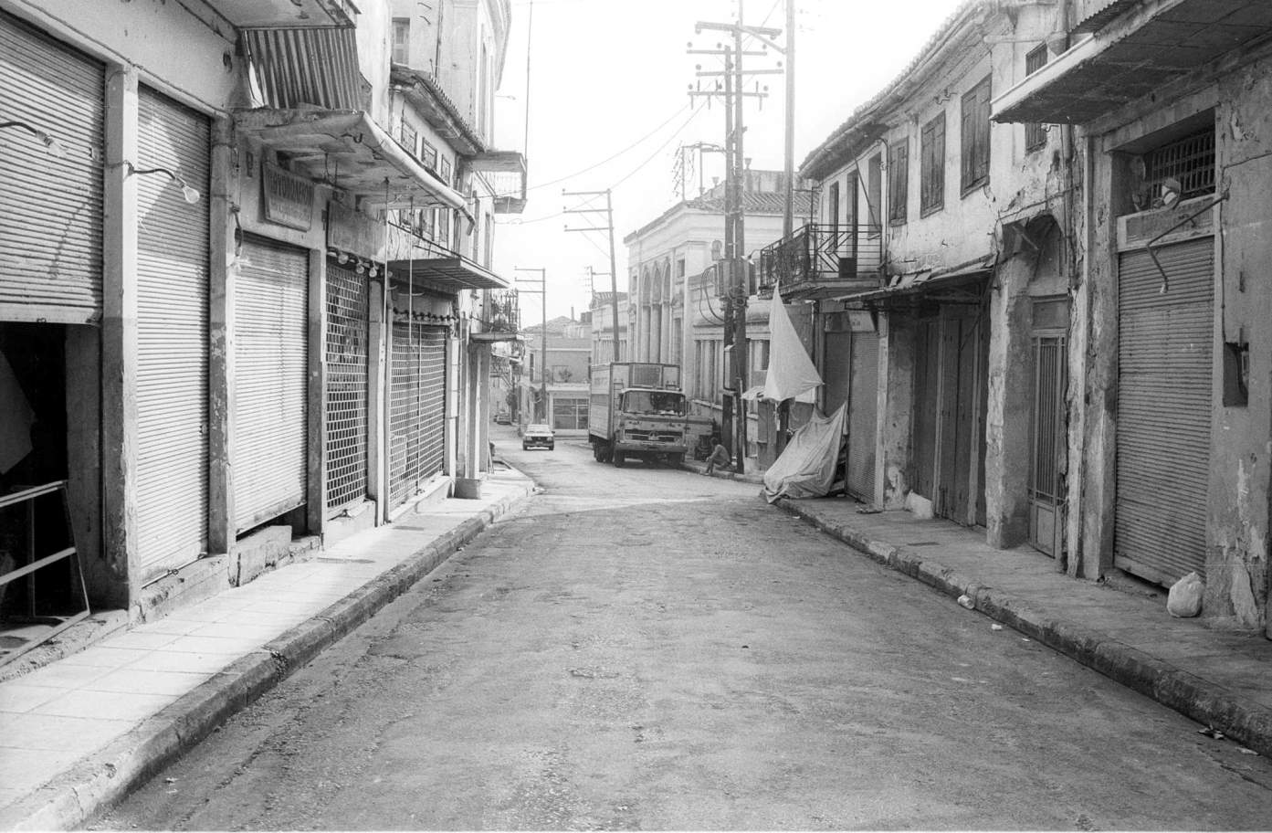 Δεξιά το ποτοποιίο Αφων Πασσά, το κατάστημα τυροκομικών Δημ. Τζίνη και το μανάβικο του κυρ Φώτη