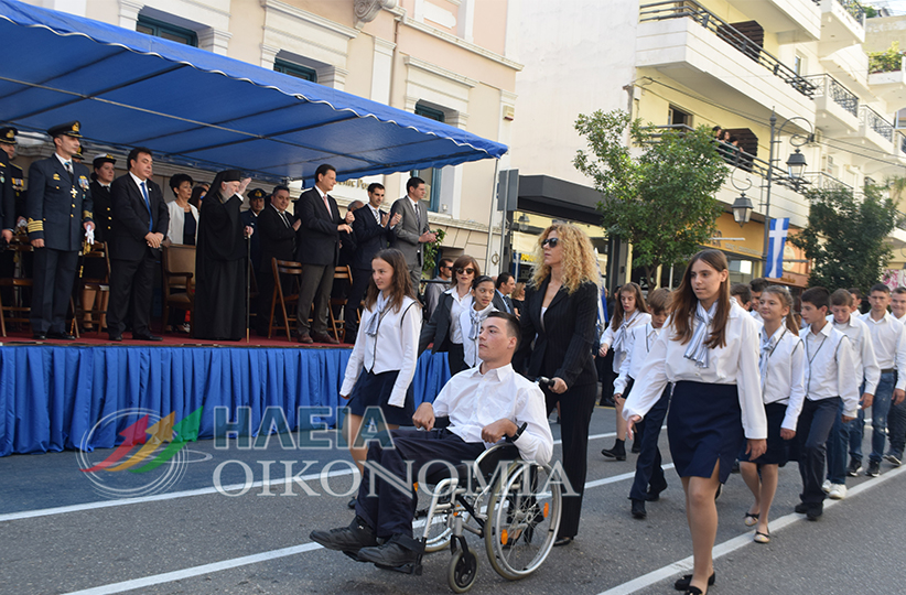 Την παρέλαση “άνοιξαν” οι μαθητές του Ειδικού Σχολείου Πύργου που χειροκροτήθηκαν ασταμάτητα απο τον κόσμο.