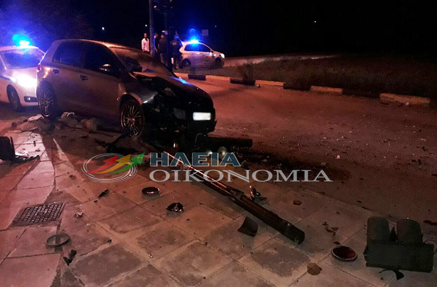 Πύργος: Αυτοκίνητο καρφώθηκε σε φανάρι στον Κόμβο Φιλοθέης