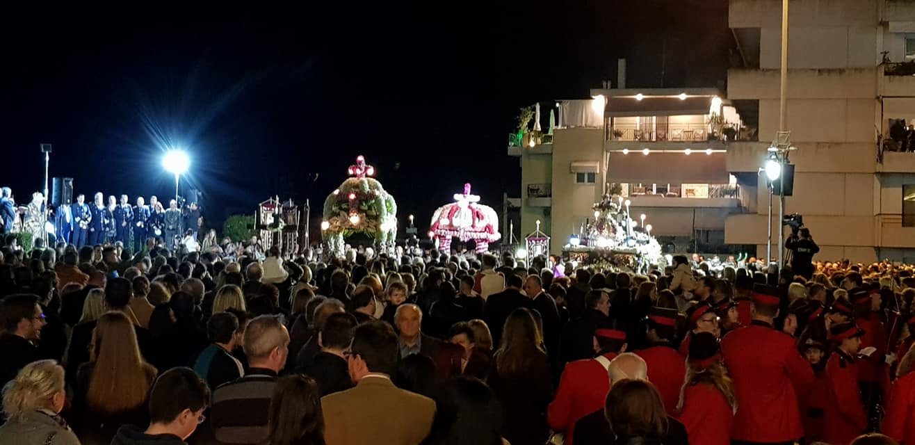 Στην κεντρική πλατεία έφθασανοι επιτάφιοι των Ενοριών Αγίου Νικολάου, Αγίου Αθανασίου, Αγίου Διονυσίου και της Αγίας Κυριακής.