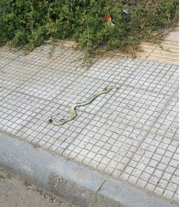 Αυτό το φίδι είναι απο χθες στην Διονυσίου Βέρρου. Σύμφωνα με πληροφορίες του Iliaoikonomia.gr σκοτωμένο φίδι βρέθηκε το πρωί της Δευτέρας και στην οδό Ρήγα Φεραίου στον Πύργο, κοντά στα ΤΕΙ.