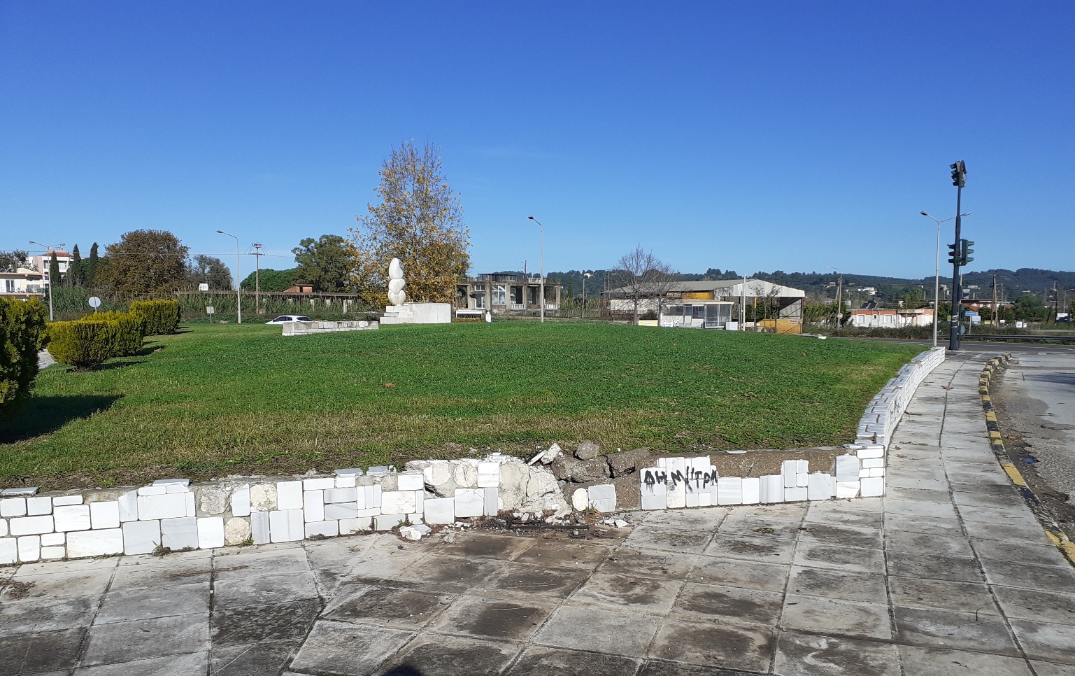 Γνωστοί – Άγνωστοι μάλλον συνοδοί των παιδιών των φαναριών, ξήλωσαν αρκετά μάρμαρα από τα παρτέρια στον κόμβο Φιλοθέης, στην κεντρική είσοδο της πόλης.