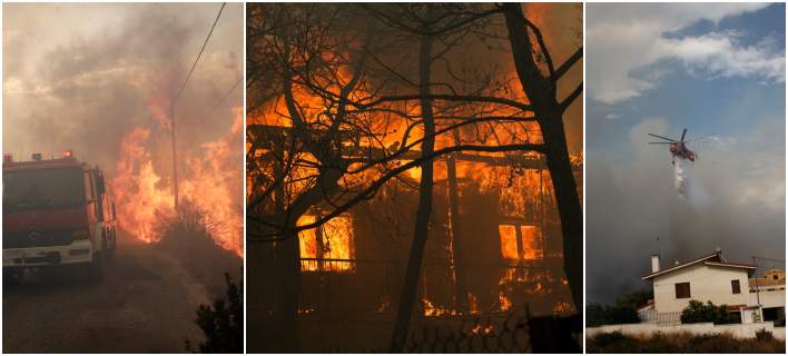 Η φωτιά έκαψε σπίτια και αυτοκίνητα στον Νέο Βουτζά, στη Ραφήνα και στο Μάτι.