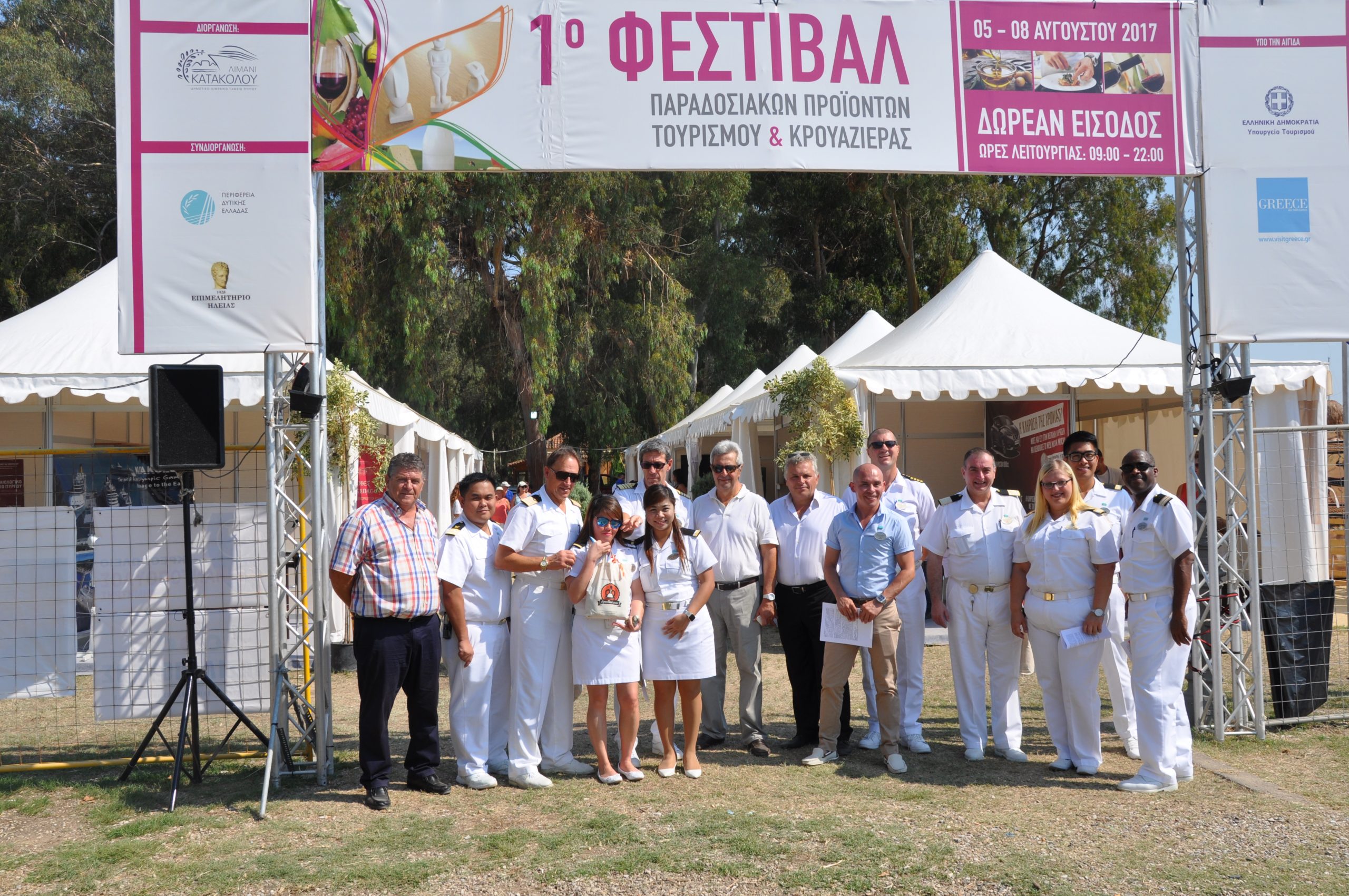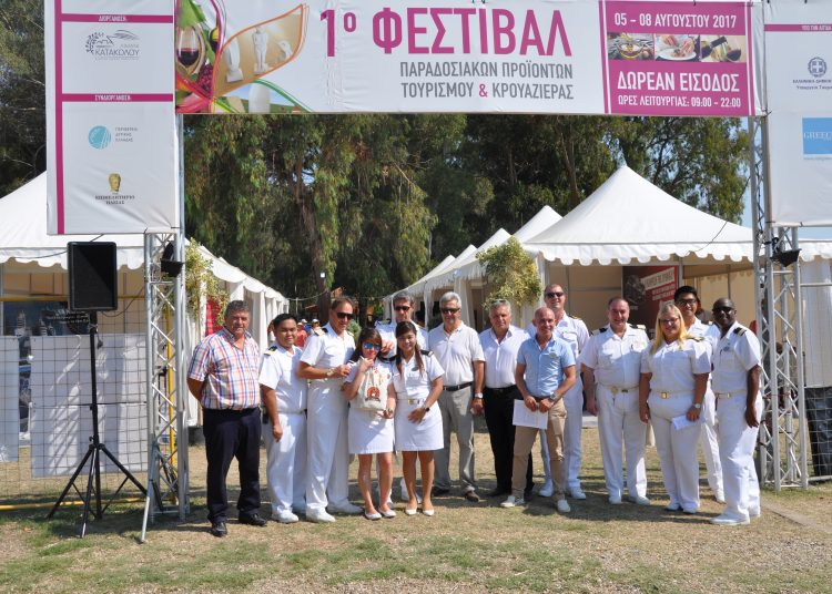 Από το κρουαζιερόπλοιο Thomson Spirit ο κ. Νικόλαος Καφετσής Captain o κ. Αργύρης Στενός Hotel Manager ο κ. Χρήστος Δράκος Chief Purser και η κα. Natalie Simpson Destination Service Manager.