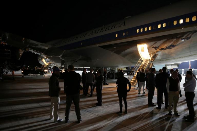 Για 90 λεπτά παρέμεινε στην βάση της Σούδας το Air Force One, οποίο προσγειώθηκε στις 3:07 και αναχώρησε στις 4:41 τοπική ώρα Ελλάδας.