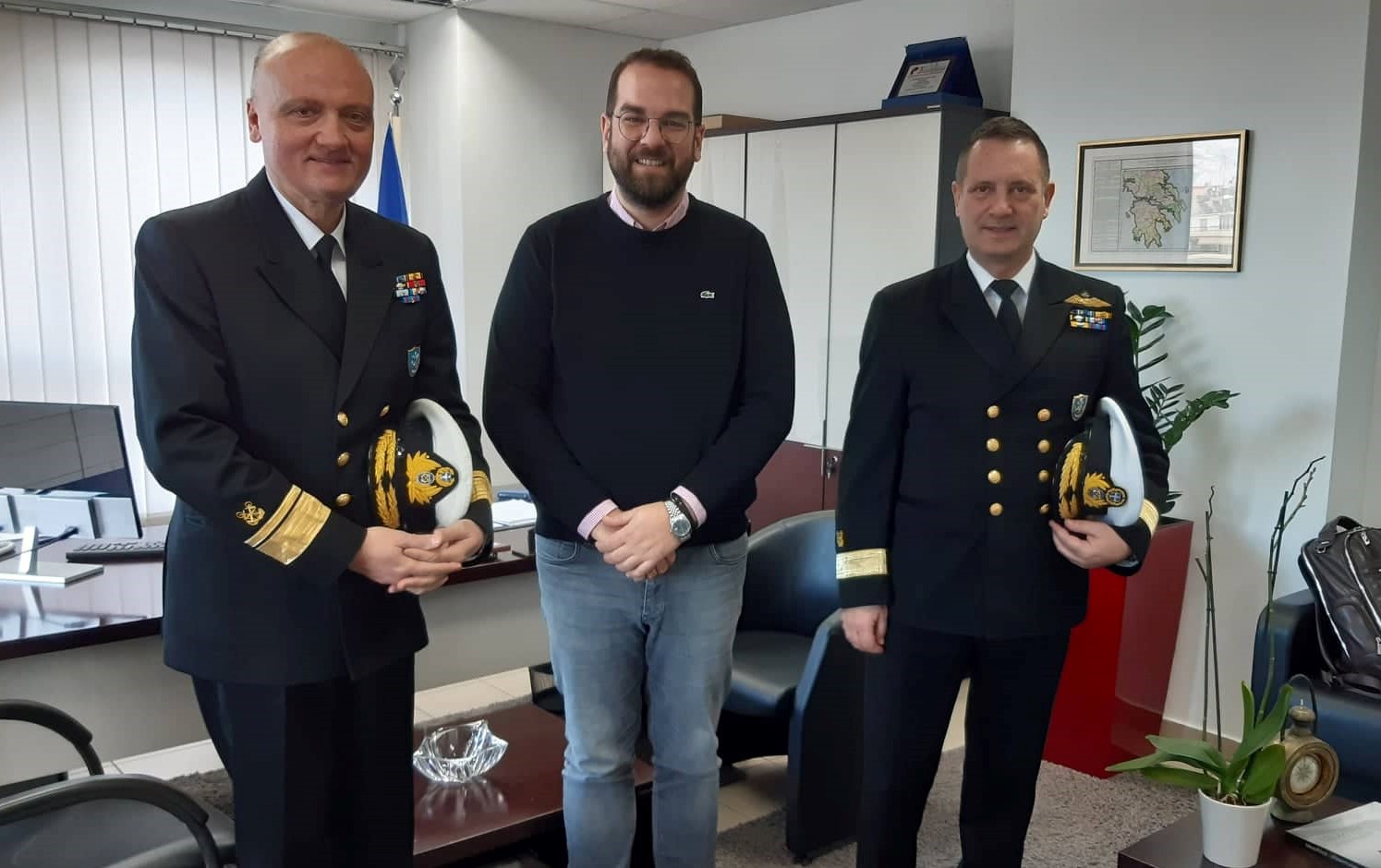 Τον Περιφερειάρχη Δυτικής Ελλάδας Νεκτάριο Φαρμάκη επισκέφθηκε σήμερα Τετάρτη 15 Ιανουαρίου 2020, ο νέος Διοικητής της 5ης  Περιφερειακής Διοικήσεως Λιμενικού Σώματος-Ελληνικής Ακτοφυλακής, Αρχιπλοίαρχος Θεοφάνης Κούρκουλος, συνοδευόμενος από τον απερχόμενο Διοικητή, Υποναύαρχο Σπυρίδωνα Κοντομάρη.