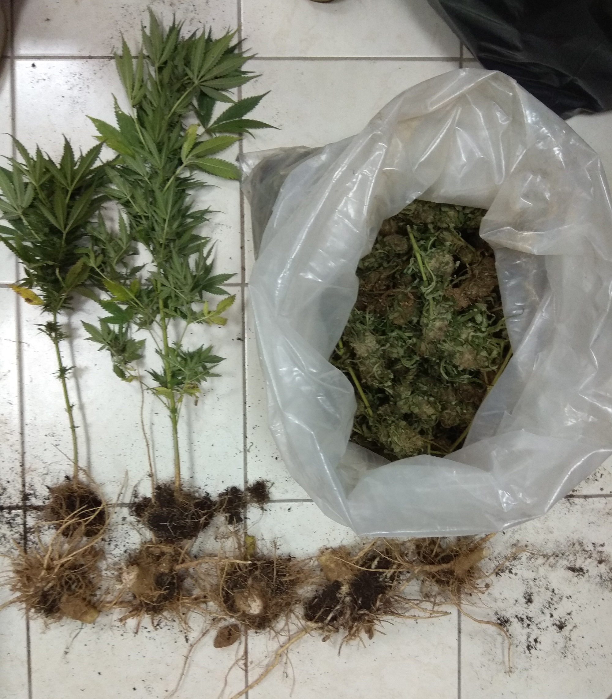 • Πέντε ριζικά συστήματα φυτών κάνναβης, τα οποία ήταν αποκομμένα από το έδαφος.
