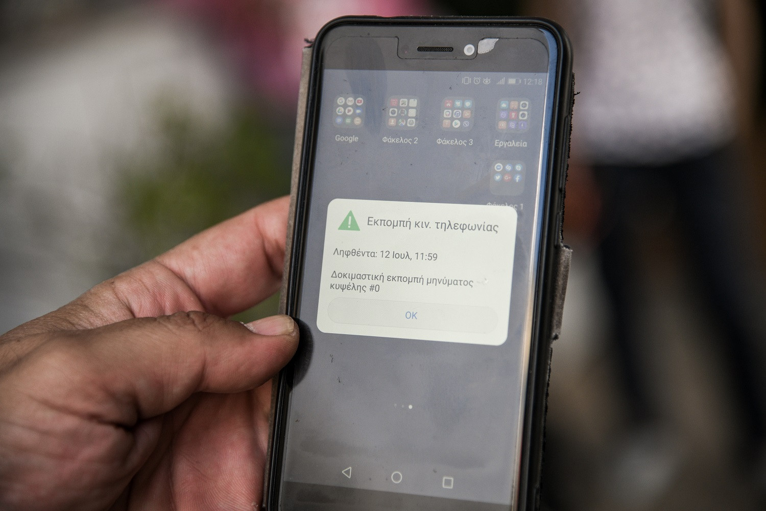 Μηνύματα Εκπομπής Κυψέλης (Cell Broadcast – CB). Αν ο πολίτης διαθέτει έξυπνο κινητό λαμβάνει γραπτό προειδοποιητικό μήνυμα, που εμφανίζεται στην οθόνη του κινητού τηλεφώνου και συνοδεύεται από χαρακτηριστικό ήχο συναγερμού (διαφορετικού από κάθε άλλο ήχο ειδοποίησης της συσκευής). Η αποστολή μηνυμάτων CB γίνεται δωρεάν και υποστηρίζεται δυνητικά από την πλειοψηφία των έξυπνων κινητών τηλεφώνων που έχουν αγοραστεί στην Ελλάδα.