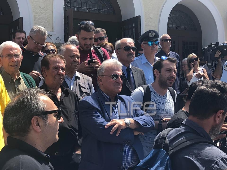 Συντετριμμένη έφθασε στην εκκλησία η σύντροφος της ζωής του, η σύζυγος του Χαρίκλεια και η κόρη τους Κορίνα