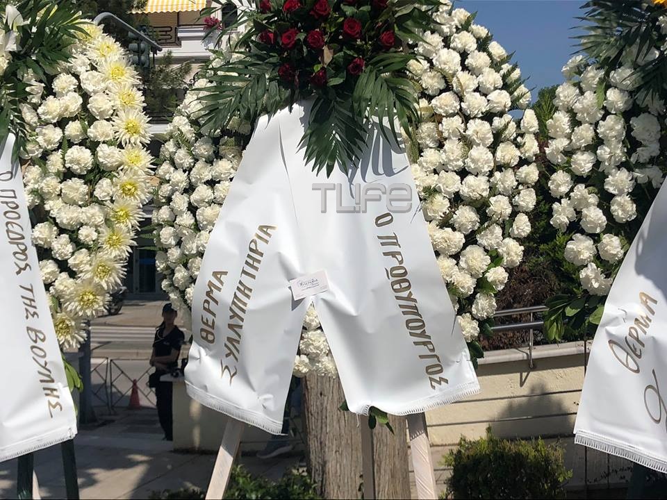 Ο προαύλιος χώρος της εκκλησίας γέμισε από στεφάνια γνωστών Ελλήνων που χαιρετούν για πάντα τον αγαπημένο τους Χάρρυ Κλυνν