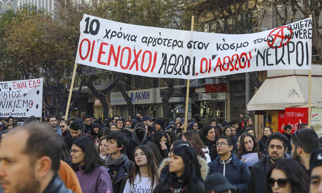 Επεισόδια σημειώθηκαν και στη Θεσσαλονίκη στην πορεία για τη συμπλήρωση δέκα χρόνων από τη δολοφονία του Αλέξανδρου Γρηγορόπουλου.