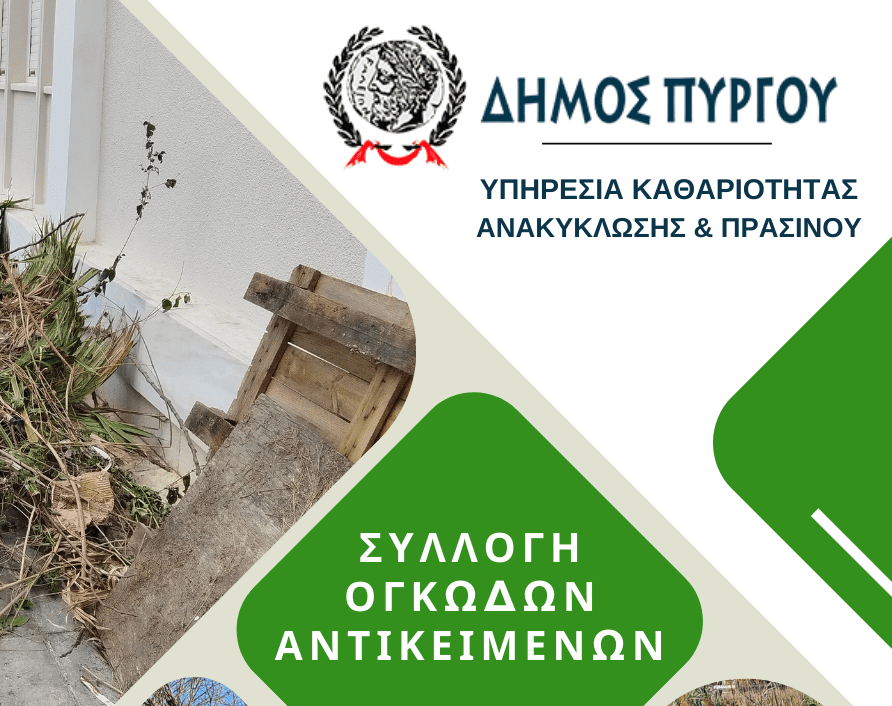 Εκ νέου κάλεσμα προκειμένου να σταματήσει επιτέλους η ανεξέλεγκτη εναπόθεση αντικειμένων, κηπαίων απορριμμάτων (κλαδιά, χόρτα, κ.τ.λ.) και ογκωδών απορριμμάτων (έπιπλα, στρώματα, διάφορες συσκευές, κ.τ.λ.), κάνει ο Δήμος Πύργου μέσω του αντιδημάρχου Περιβάλλοντος, Καθαριότητας και Πρασίνου Βασίλη Φάμελου.