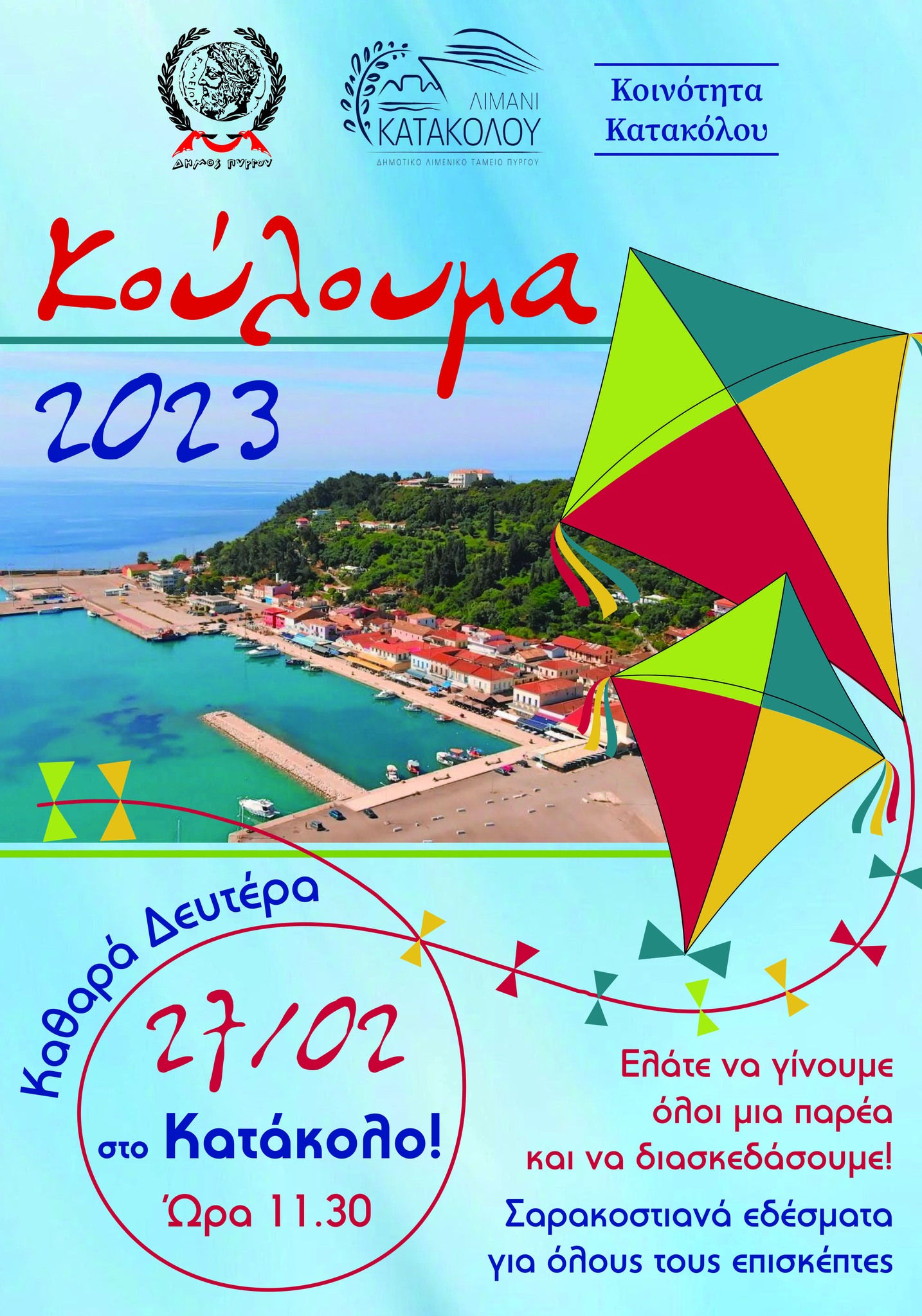 – Ο Δήμος Πύργου, το Δημοτικό Λιμενικό Ταμείο και η Κοινότητα Κατακόλου, καλούν όλους τους δημότες στα «Κούλουμα 2023» την Καθαρή Δευτέρα 27 Φεβρουαρίου στο Κατάκολο και ώρα 11.30 π.μ.