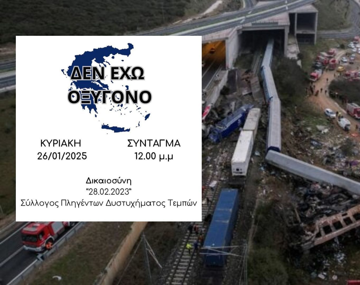Το κάλεσμα για συγκέντρωση στο Σύνταγμα την Κυριακή 26 Ιανουαρίου στις 12.00 το μεσημέρι από τον Σύλλογο Συγγενών Θυμάτων Τεμπών βρίσκει μεγάλη ανταπόκριση, καθώς δεκάδες συλλογικότητες, φορείς και σωματεία θα δώσουν δυναμικό παρών.