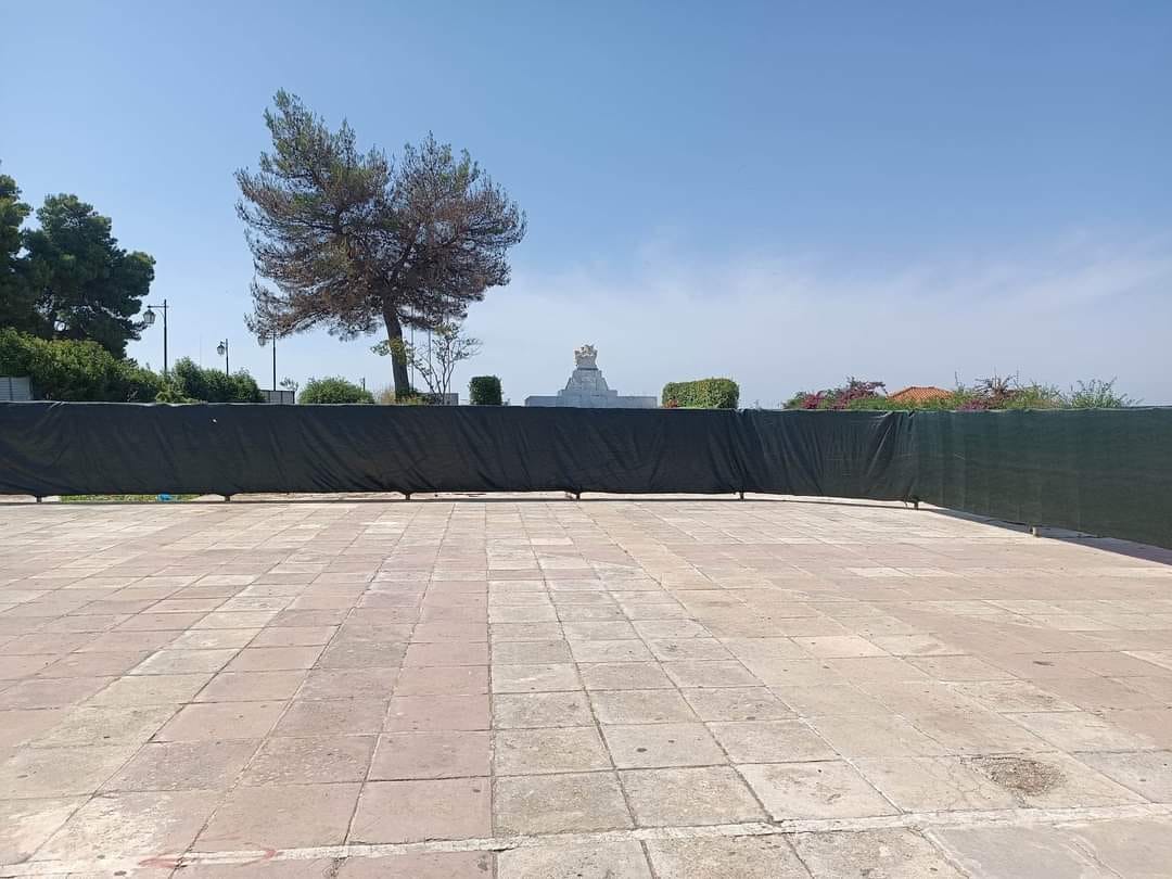 ΣΗΜΕΡΑ το Μνημείο του Άγνωστου Στρατιώτη στην κεντρική πλατεία Πύργου, φυλακισμένο με λαμαρίνες για πάνω από τρία χρόνια και η σημερινή Δημοτική Αρχή αδυνατεί να εκτελέσει το έργο.