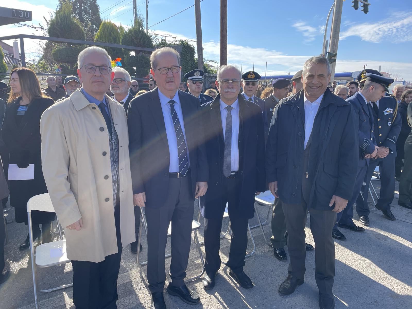 Ο νεοεκλεγείς Δήμαρχος Πύργου Στάθης Καννής μαζί με τον Περιφερειάρχη Πελοποννήσου Παναγιώτη Νίκα, τον Αντιπεριφερειάρχη Πελοπ. Χρήστο Λαμπρόπουλο και τον Δήμαρχο Τρίπολης Κώστα Τζιούμη στα αποκαλυπτήρια της προτομής του Υποσμηναγού Μ Τουρούτσικα στην Τρίπολη