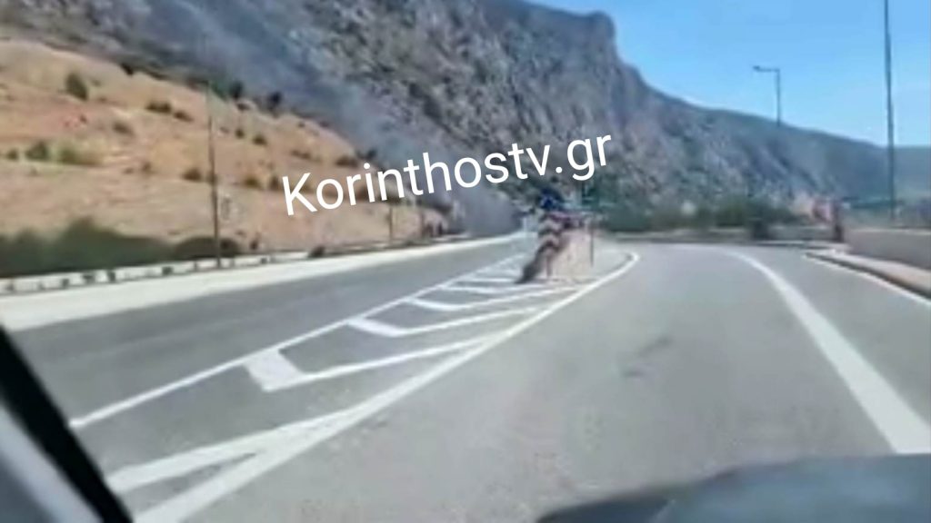 Στις φλόγες τυλίχθηκε διερχόμενο όχημα στην Εθνική οδό Αθηνών-Κορίνθου στο ρεύμα προς Κόρινθο στο πρώτο τούνελ της Κακιάς Σκάλας μετά τα Μέγαρα.