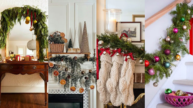 Σε σημεία όπως περιμετρικά σε πόρτες, στο τζάκι, σε σκάλες κλπ μια χριστουγεννιάτικη γιρλάντα είναι ο πιο απλός τρόπος δημιουργίας ενός μεγάλου όγκου κεντρικού χριστουγεννιάτικου στοιχείου.