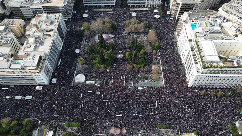 Δεκάδες χιλιάδες πολίτες βούλιαξαν σήμερα την πλατεία Συντάγματος στην Αθήνα, αλλά και δεκάδες πλατείες σε πόλεις της Ελλάδας και του Εξωτερικού, ανταποκρινόμενοι στο κάλεσμα του Συλλόγου Συγγενών Θυμάτων των Τεμπών.