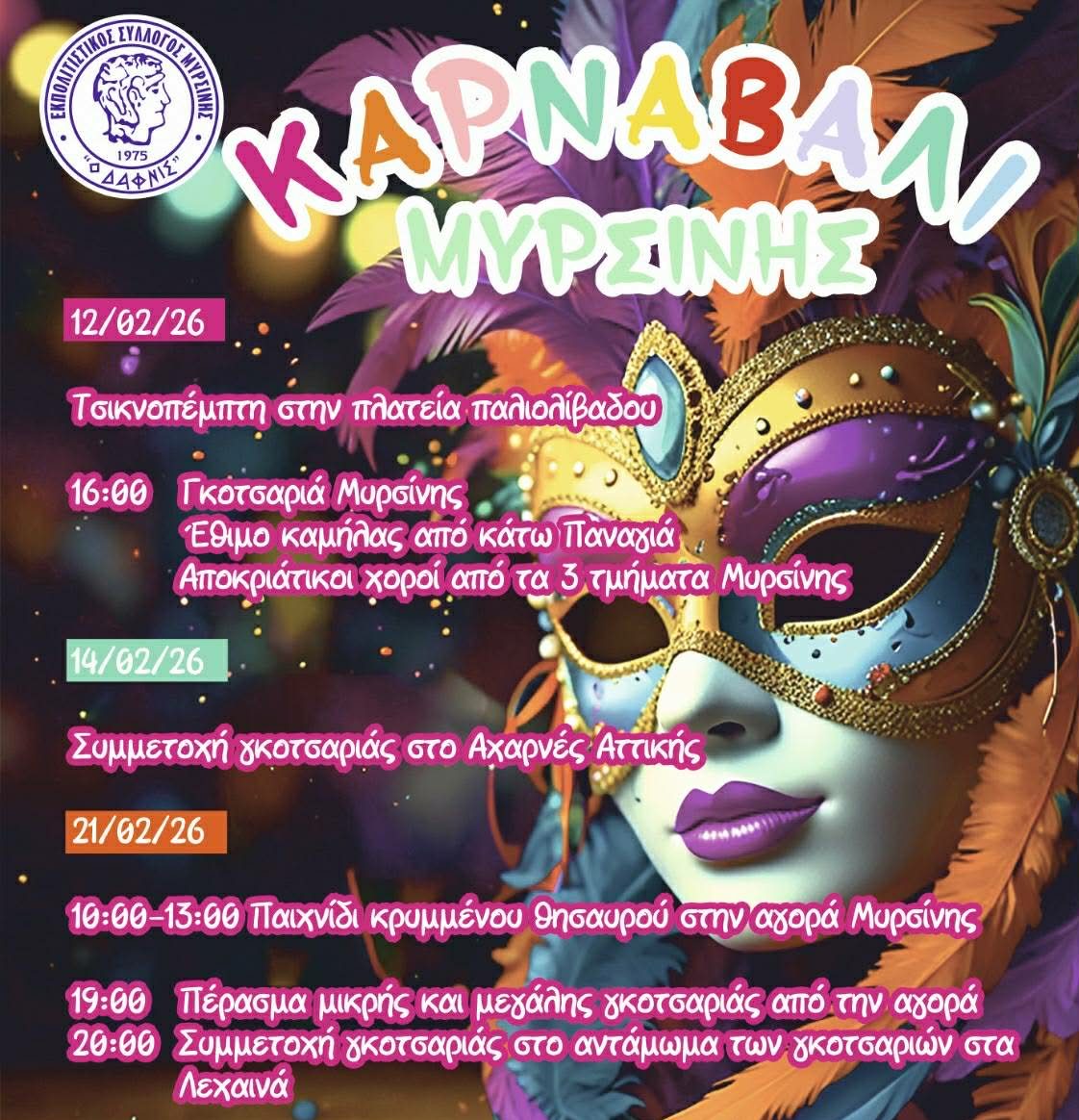 «Φορέστε τη στολή σας, την καλύτερή σας διάθεση και ελάτε να δημιουργήσουμε μαζί αναμνήσεις γεμάτες γέλιο και χαρά. Το Καρναβάλι 2026 είναι εδώ και σας περιμένει!»