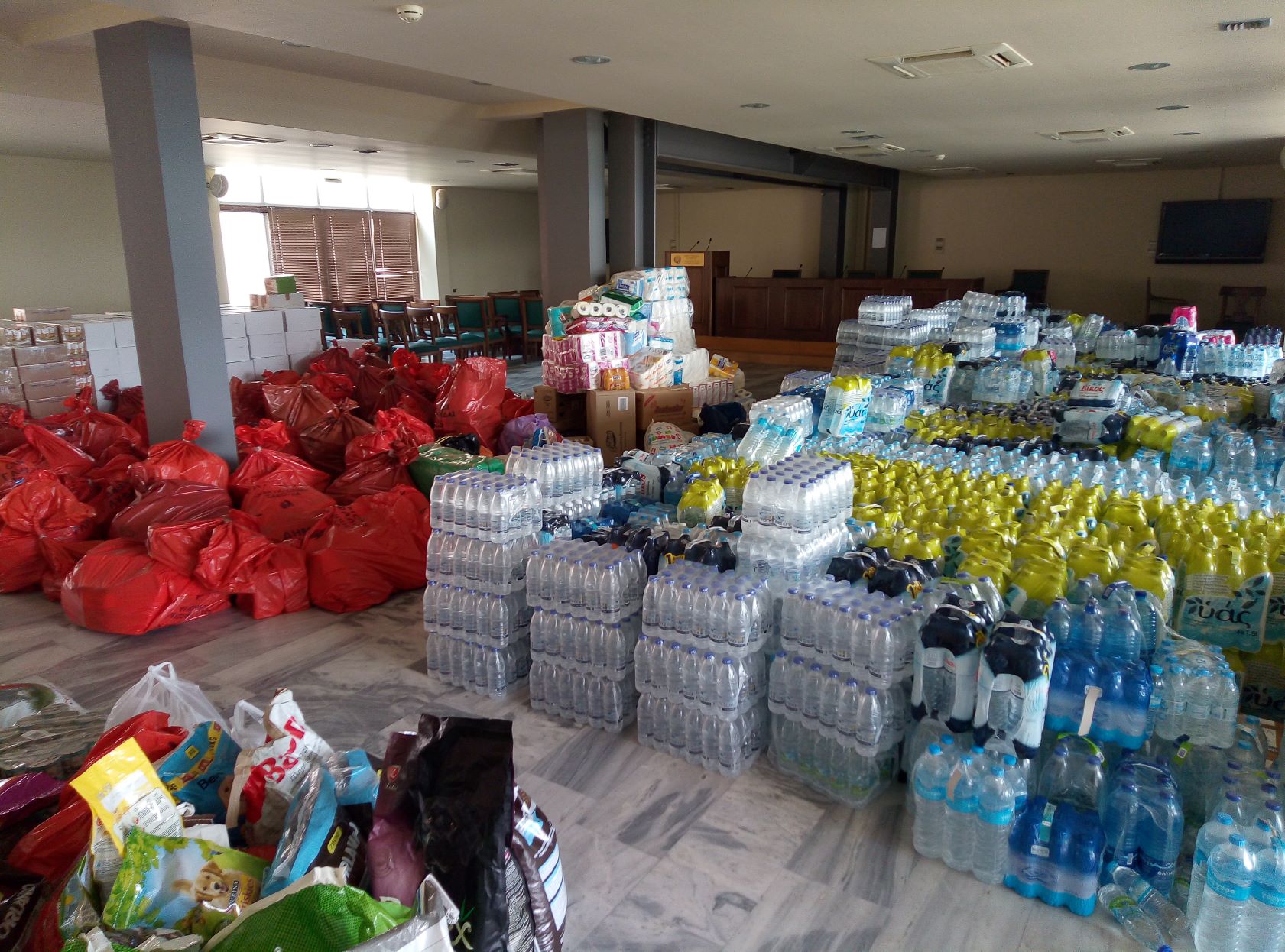 αίθουσες στο ισόγειο του Δημαρχείου είναι ήδη σχεδόν πλήρεις, τα υλικά που