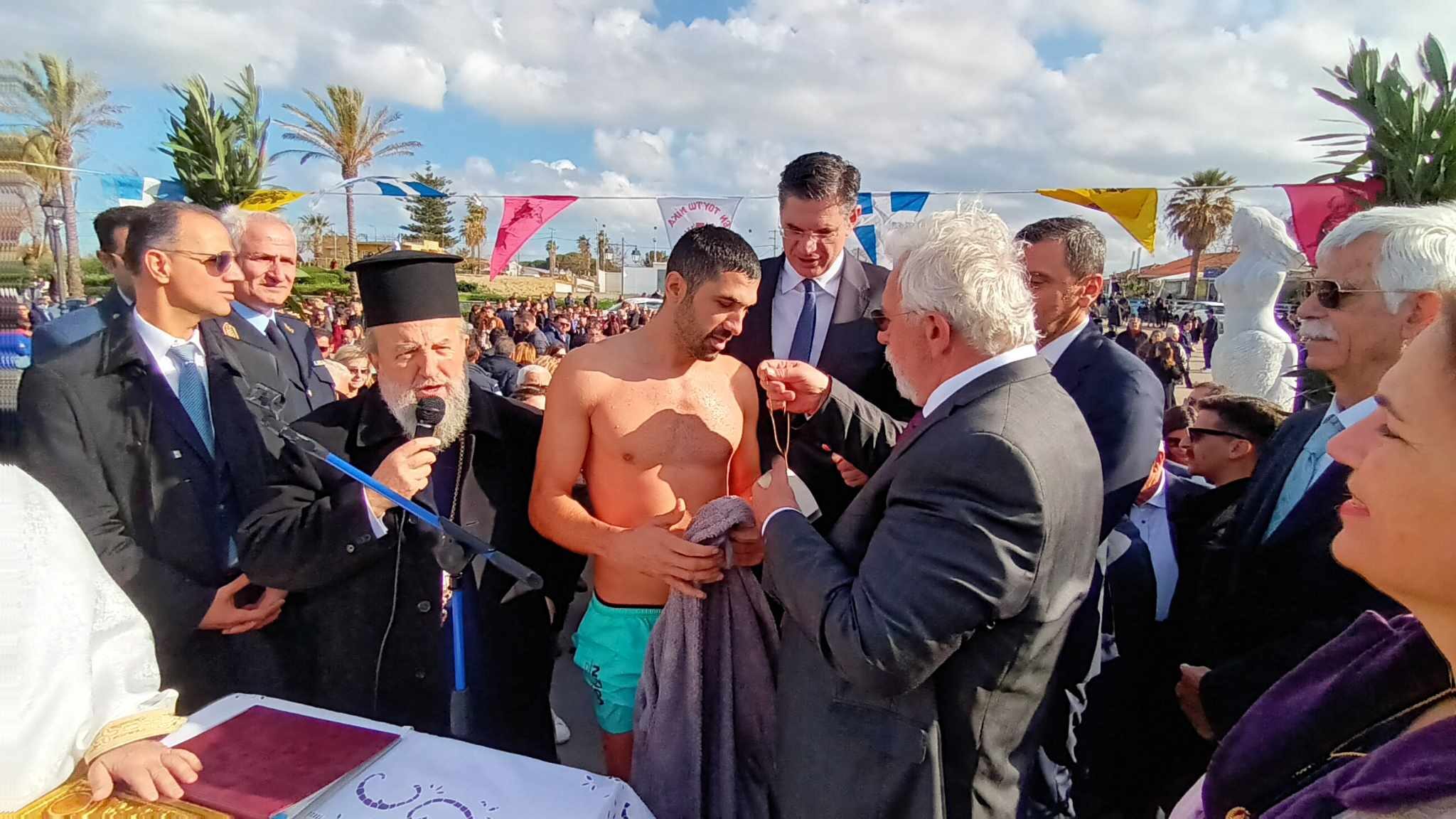 Ιδιαίτερα μεγάλη ήταν και η συμμετοχή των κολυμβητών που βούτηξαν για να πιάσουν το σταυρό, οι οποίοι ήταν συνολικά 12 στον αριθμό, ανάμεσά του και μικρά σε ηλικία παιδιά.