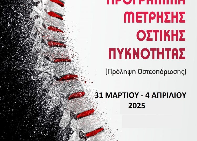 Ο Δήμος Ήλιδας μέσω του ΚΕΠ Υγείας που διαθέτει και στο πλαίσιο των προγραμμάτων πρόληψης και προαγωγής υγείας που υλοποιεί, ανακοινώνει για μία εβδομάδα δωρεάν μετρήσεις οστικής πυκνότητας σε κατοίκους Τοπικών Κοινοτήτων, σε συνεργασία με το Ελληνικό Διαδημοτικό Δίκτυο Υγιών Πόλεων.