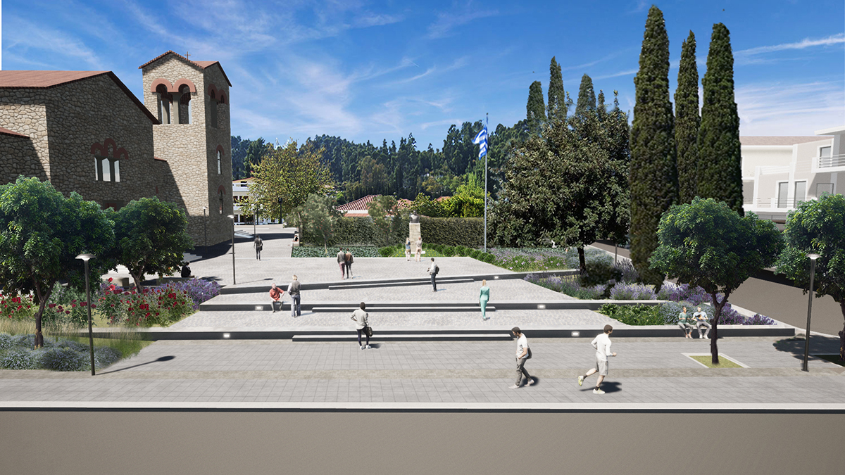 1: Ανάπλαση πλατείας Ι.Ν. Κοίμησης Θεοτόκου Αρχαίας Ολυμπίας με την οποία επιχειρείται