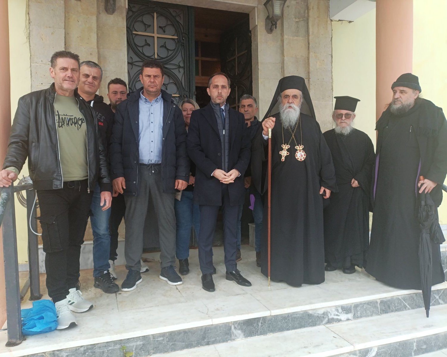 Δήμαρχος και Μητροπολίτης επισκέφθηκαν τον Ιερό Ναό, προκειμένου να εξετάσουν από κοντά την έκταση του προβλήματος για να ορίσουν τις ενέργειες που θα ακολουθηθούν για την αποκατάσταση των ζημιών που προκλήθηκαν από τα κατολισθητικά φαινόμενα των προηγούμενων ημερών. Παρόντες στη συνάντηση ήταν ο Δημοτικός Σύμβουλος, κ. Αντώνης Μουζής, ο Πρόεδρος της Τ.Κ. Στρεφίου, κ. Κώστας Παναγιωτακόπουλος και ο εφημέριος, κ. Αλέξιος Ντάβαρης.