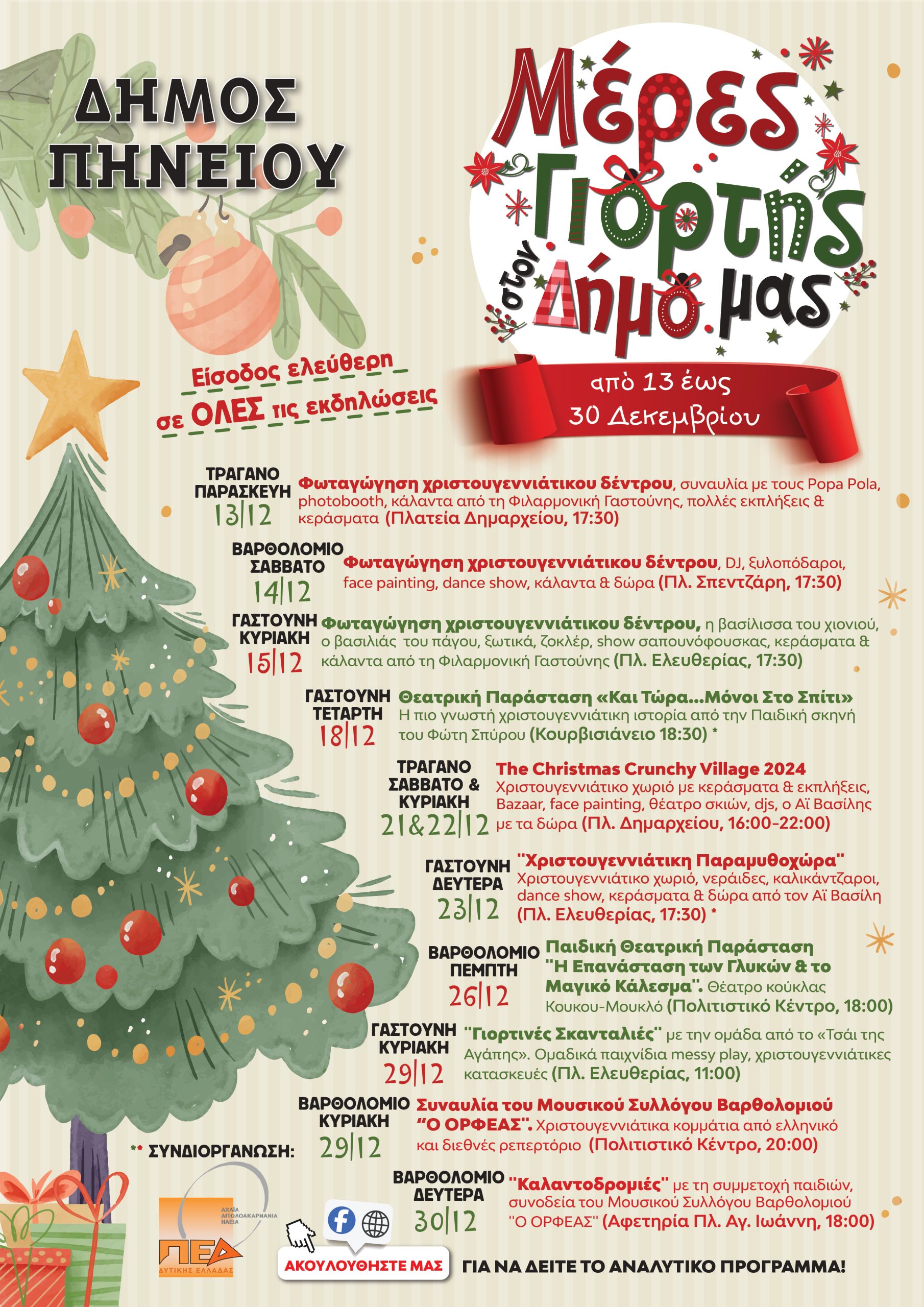 Δήμος Πηνειού· από τις 13 έως τις 30 Δεκεμβρίου μετατρέπεται σε ένα μαγικό, γιορτινό