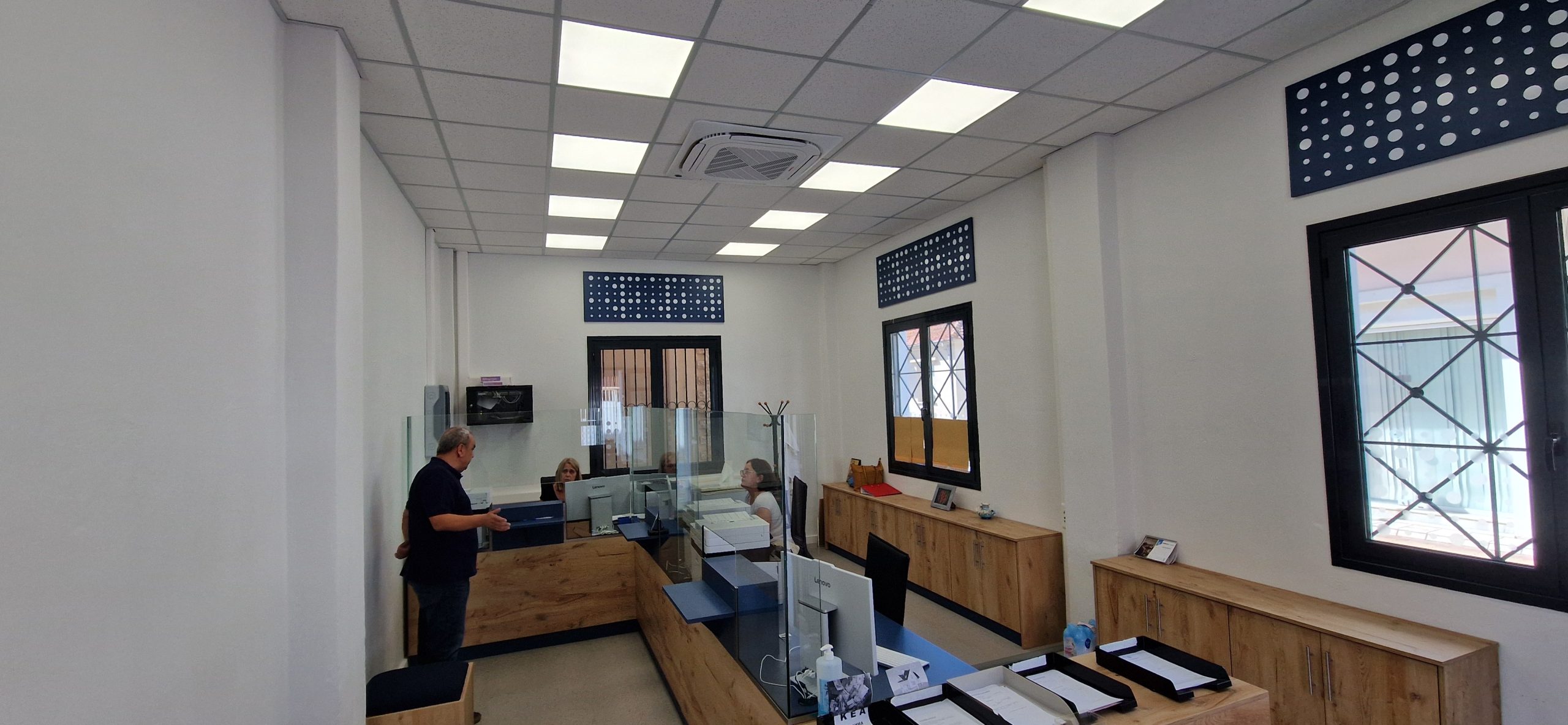 διαρρύθμιση των χώρων με στόχο την ενίσχυση της εύρυθμης λειτουργίας των υπηρεσιών και συνακόλουθα την διευκόλυνση της εξυπηρέτησης των πολιτών. Ειδικότερα προβλέπεται μεταξύ άλλων η τοποθέτηση ψευδοροφής από πλάκες ορυκτών ινών, ελαιοχρωματισμοί εσωτερικών τοιχοποιιών, η προμήθεια και τοποθέτηση γραφείων και ερμαρίων, η εγκατάσταση φωτιστικών ψευδοροφής led panel, η προμήθεια και τοποθέτηση κλιματιστικής μονάδας Inverter τύπου κασέτας κ.α. . Αναβαθμίζεται το δημοτικό κτίριο της πλατείας Ηρώων.