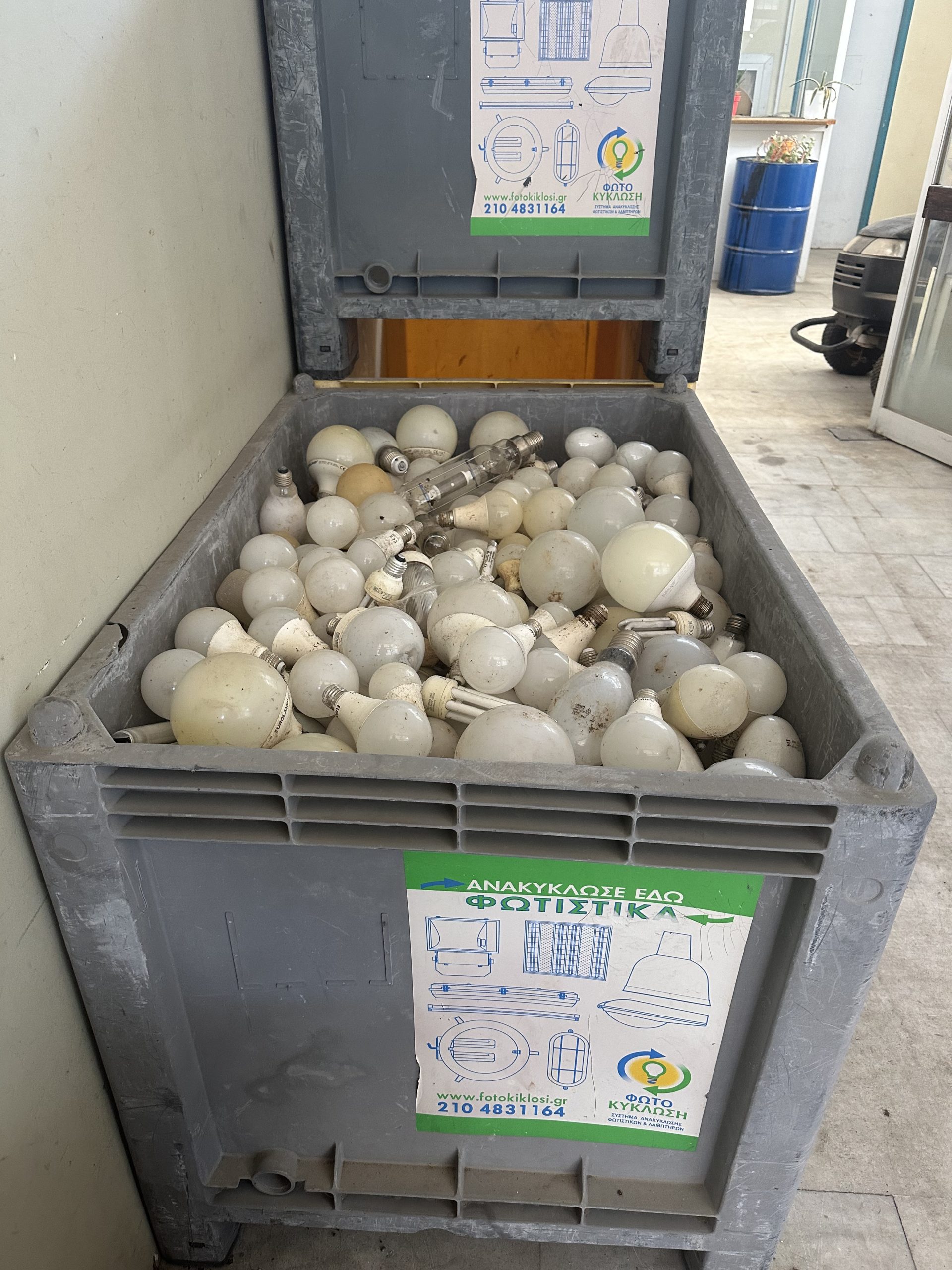 Eπιπλέον, σε συνεργασία με το Τμήμα Ηλεκτρολόγων του Δήμου Πύργου, εφαρμόζεται μια στοχευμένη δράση για την ανακύκλωση τουηλεκτρολογικού υλικού που αντικαθίσταται από τις δημοτικές υποδομές, όπως λαμπτήρες και φωτιστικά σώματα. Τα υλικά αυτά συγκεντρώνονται και αποστέλλονται για ανακύκλωση, αποτρέποντας την απόρριψή τους στους κοινά απορρίμματα.