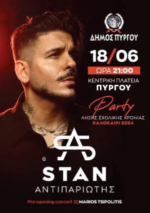τραγουδιστή Σταν, ενώ τη συναυλία θα ανοίξει ο γνωστός dj Marios Tsipolitis.