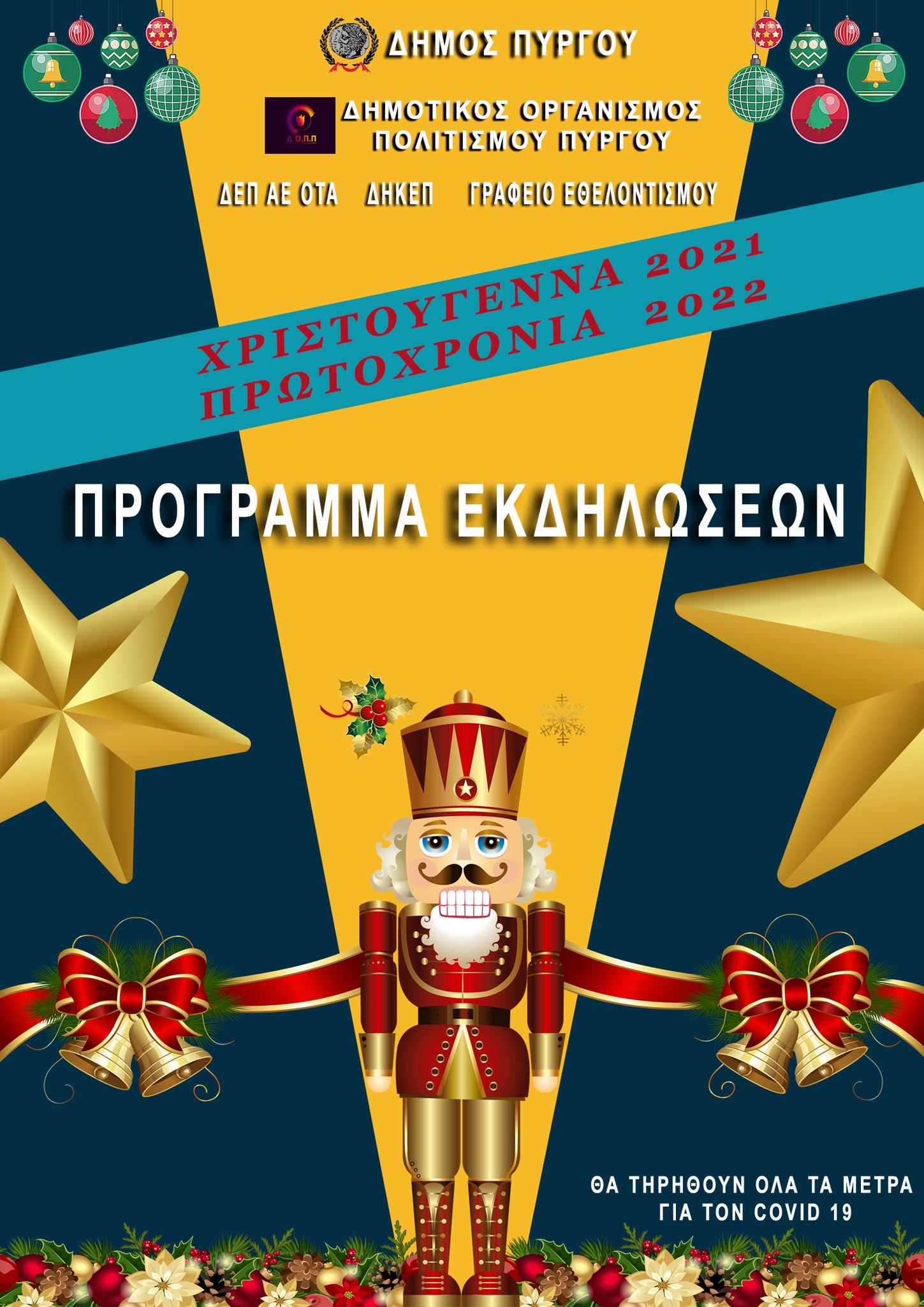 Μέχρι και τις 3 Ιανουαρίου, στην κεντρική πλατεία της πόλης, το Θεματικό Πάρκο Ξυστρή, όπου επιστρέφει το «Μαγικό εργοστάσιο», το θέατρο «Απόλλων» και άλλες γειτονιές του Πύργου, όπως και σε δημοτικές κοινότητες θα χτυπήσει η καρδιά των Χριστουγέννων. Ξυλοπόδαροί, ζογκλέρ, μουσικές συναυλίες αγαπημένων καλλιτεχνών, αθλητικές δράσεις, θεατρικές παραστάσεις, bazaar, χωριό καλικαντζάρων, παιχνίδια, θέατρο, σκιών, παραδοσιακά μουσικά σύνολα συνθέτουν το πλούσιο πρόγραμμα που θα διασκεδάσει μικρούς και μεγάλους.