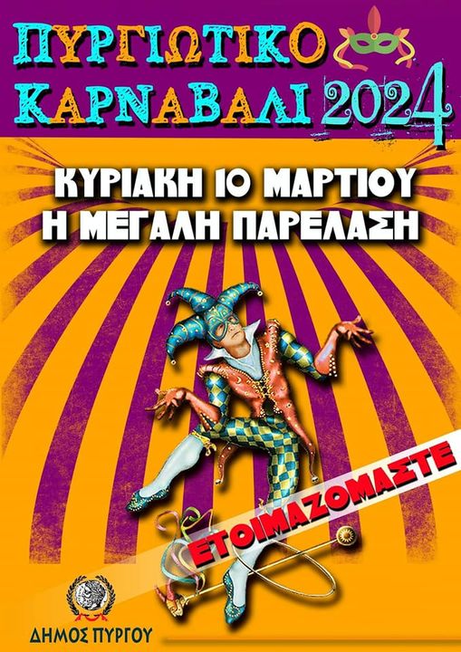 ΔΗΜΟΣ ΠΥΡΓΟΥ: ΠΥΡΓΙΩΤΙΚΟ ΚΑΡΝΑΒΑΛΙ 2024-Έναρξη των αποκριάτικων εκδηλώσεων 25 Φεβρουαρίου