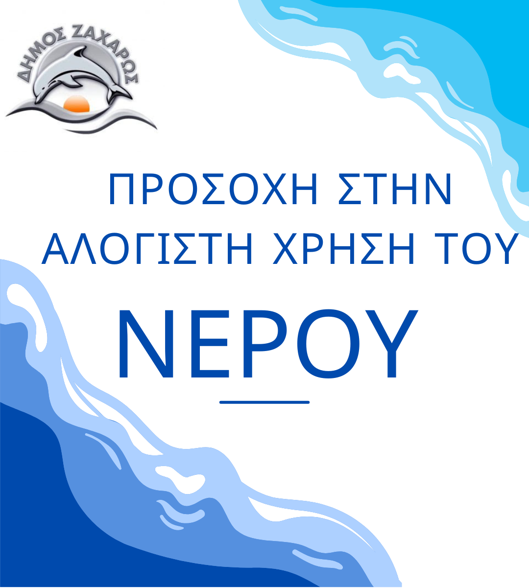 Δεδομένων των παραπάνω, ο Δήμος Ζαχάρως προχωρά στην εφαρμογή του Κανονισμού Ύδρευσης και ανακοινώνει ότι η χρήση νερού θα πρέπει να γίνεται αποκλειστικά και μόνο για οικιακή χρήση και όχι για άρδευση, ενώ απαγορεύονται αυστηρά η κατανάλωση νερού σε περιττές δραστηριότητες.