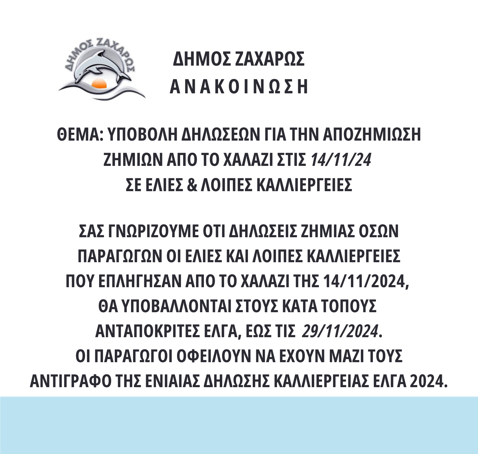 Δήμος Ζαχάρως: Ξεκίνησαν οι αιτήσεις για αποζημίωση ζημιών από χαλάζι