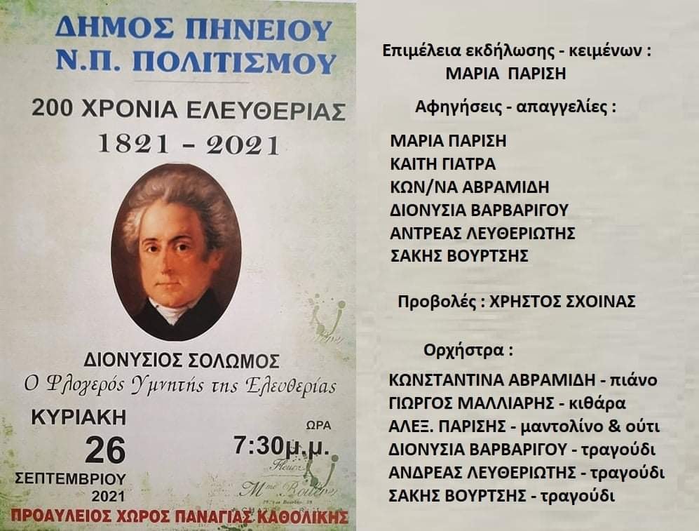 Γαστούνη, εκδήλωση αφιερωμένη στον εθνικό μας ποιητή Διονύσιο Σολωμό,