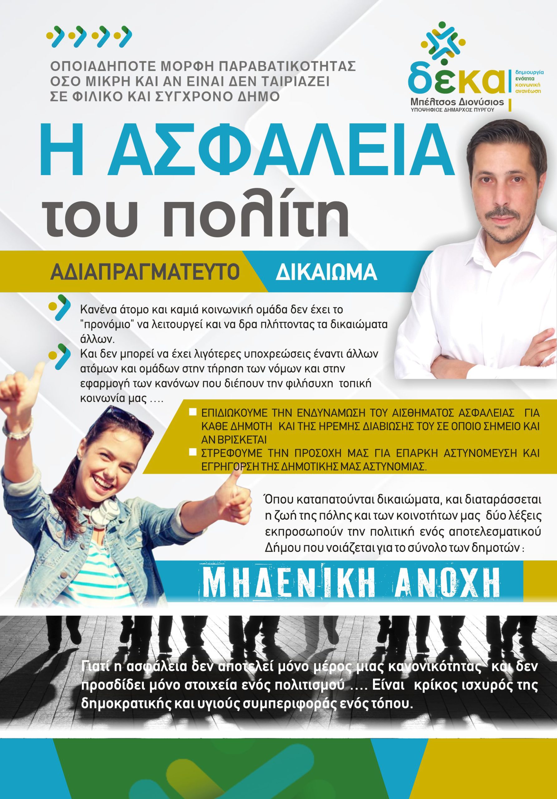 ΕΠΙΔΙΩΚΟΥΜΕ ΤΗΝ ΕΝΔΥΝΑΜΩΣΗ ΤΟΥ ΑΙΣΘΗΜΑΤΟΣ ΑΣΦΑΛΕΙΑΣ ΓΙΑ ΚΑΘΕ ΔΗΜΟΤΗ ΚΑΙ ΤΗΣ ΗΡΕΜΗΣ ΔΙΑΒΙΩΣΗΣ ΤΟΥ ΣΕ ΟΠΟΙΟ ΣΗΜΕΙΟ ΚΑΙ ΑΝ ΒΡΙΣΚΕΤΑΙ