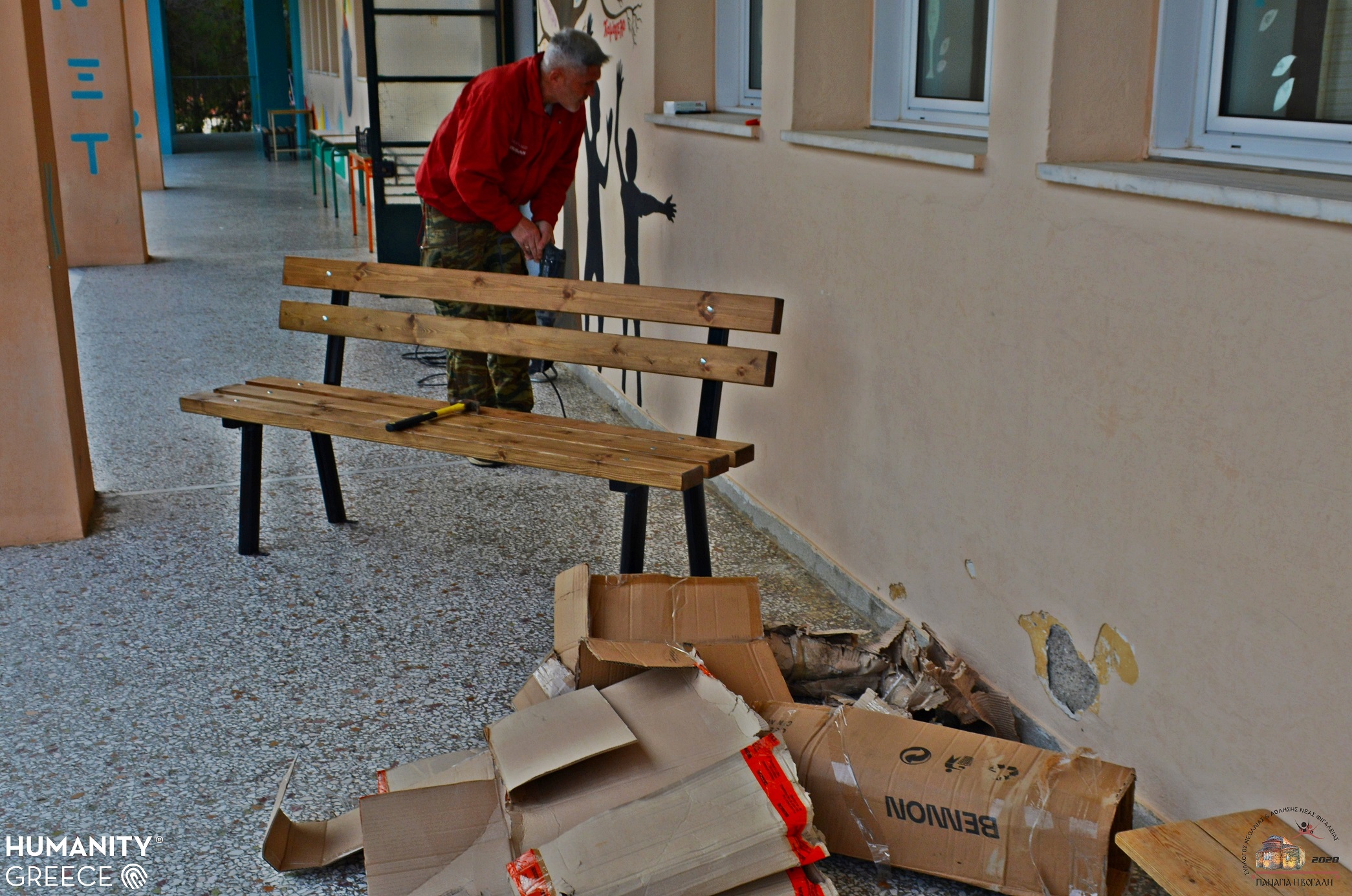 Μετά από αίτημα του Συλλόγου Νεολαίας και Άθλησης Νέας Φιγαλείας σε συνεργασία με τη σχολική κοινότητα, στον φορέα Humanity Greece για την υποστήριξη σε χορηγία παγκακίων για τους μικρούς μαθητές του Νηπιαγωγείου και Δημοτικού Σχολείου Νέας Φιγαλείας, το αίτημα έγινε αμέσως αποδεκτό από το ΔΣ του φορέα.