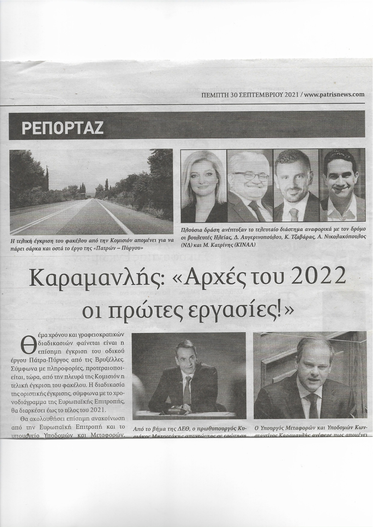 Τη μια φορά ήταν στη Διεθνή Έκθεση Θεσσαλονίκης όπου απαντώντας σε σχετική ερώτηση είπε ότι «Πολύ σύντομα θα έχουμε θετικά νέα». Τη δεύτερη φορά ήταν κατά την επίσκεψή του στην Ανδραβίδα για την παρακολούθηση σχετικής άσκησης όπου για το θέμα δήλωσε «Θα τα πούμε εν καιρώ». Την τρίτη φορά ήταν κατά την επίσκεψή του στην Αρχαία Ολυμπία όπου δήλωσε ότι «το έργο θα ξεκινήσει εντός του 2022». Αλλά το έργο δεν φαίνεται να ξεκινάει με τίποτα.