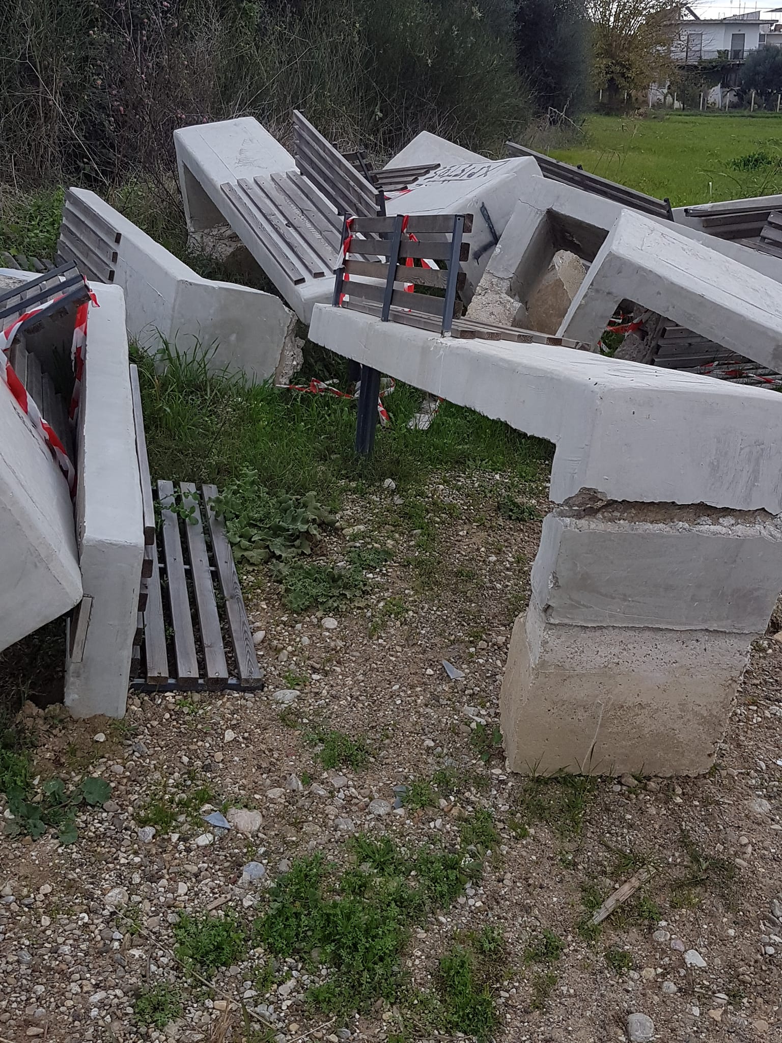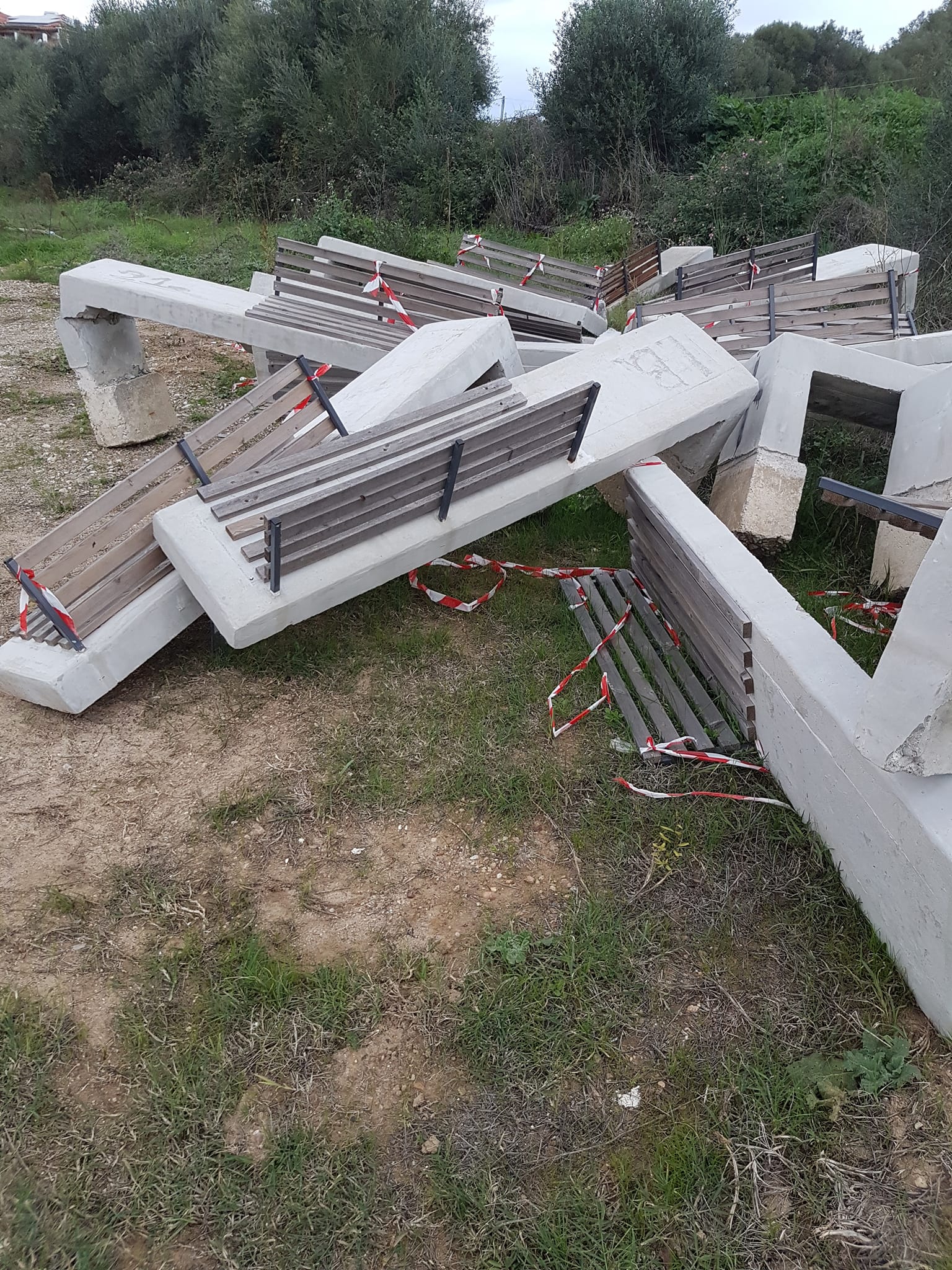 ΔΡΟΜΟΣ ΠΥΡΓΟΣ-ΑΓΙΟΣ ΙΩΑΝΝΗΣ: Ξηλώθηκαν τα τσιμεντένια παγκάκια! Ποιος πληρώνει την ζημιά;