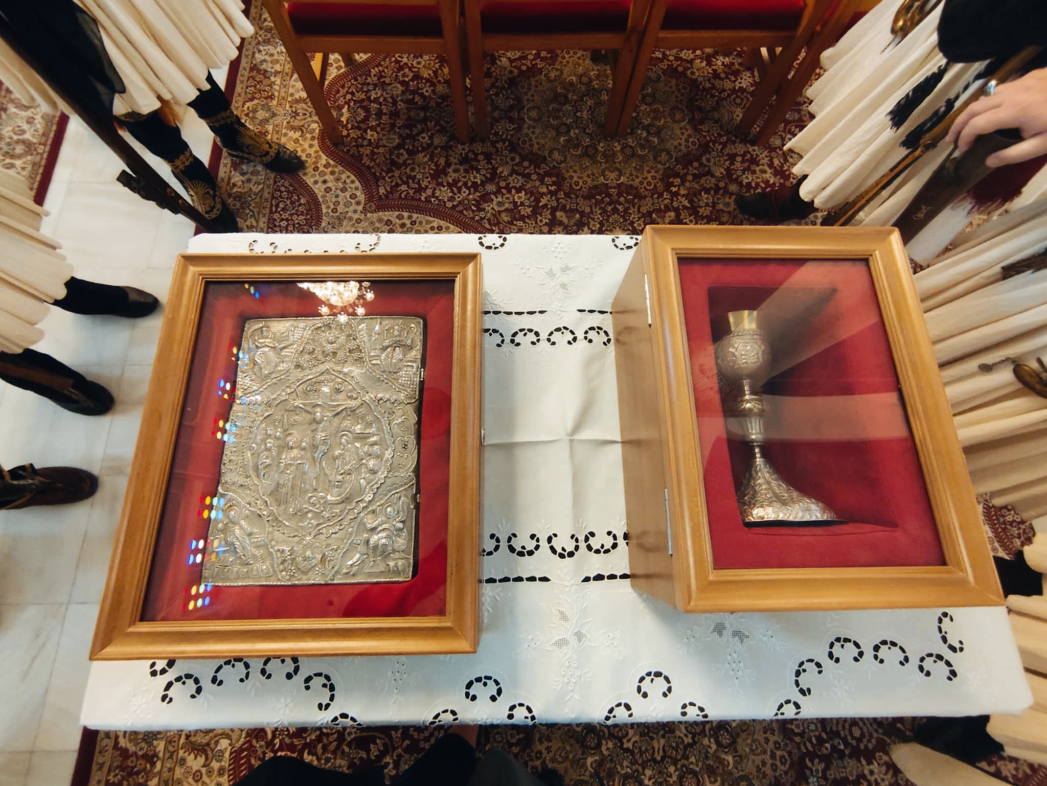 Δύο σημαντικά κειμήλια της Εθνεγερσίας, το Ιερό Ευαγγέλιο που ορκίστηκαν 40 Γερουσιαστές της Πελοποννησιακής Γερουσίας την 26η Μαΐου 1821 στην ιστορική μονή Καλτεζών και το Άγιο Δισκοπότηρο εκ της Ιεράς Μονής Κοιμήσεως της Θεοτόκου Επάνω Χρέπας με το οποίο μετέλαβε των Αχράντων Μυστηρίων ο Αρχιστράτηγος Θεόδωρος Κολοκοτρώνης στην Μονή Καλτεζών Αρκαδίας, υποδέχθηκαν σήμερα οι πολίτες στον Μητροπολιτικό Ναό Αγίου Νικολάου Πύργου, παρουσία του Σεβασμιωτάτου Μητροπολίτη Ηλείας κ.κ.Αθανασίου.