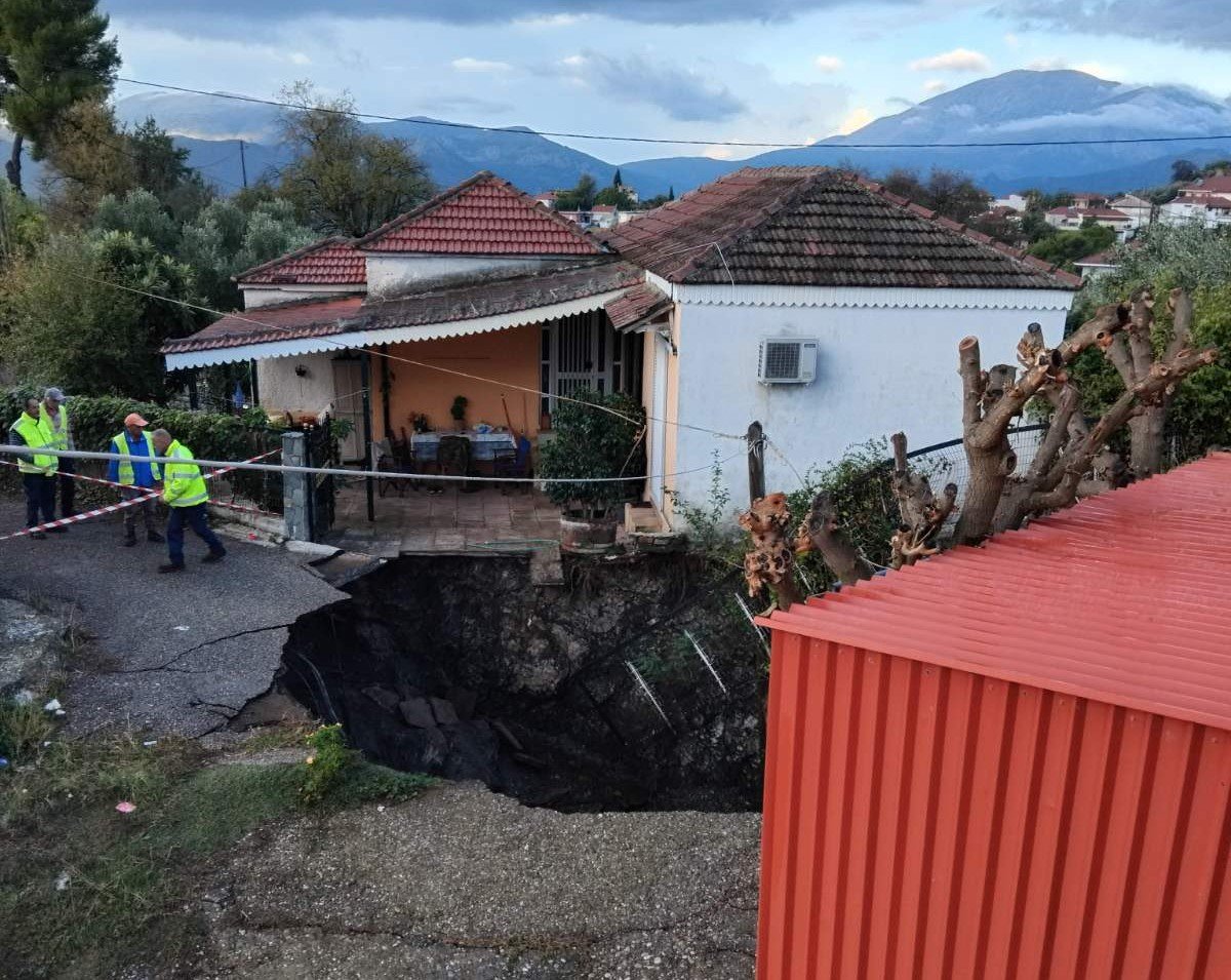 Με το πρώτο φως της ημέρας φάνηκε το μέγεθος μιας νέας επικίνδυνης καθίζησης του εδάφους, με την δημιουργία κρατήρα εντός της κοινότητας, δίπλα σε κατοικίες.