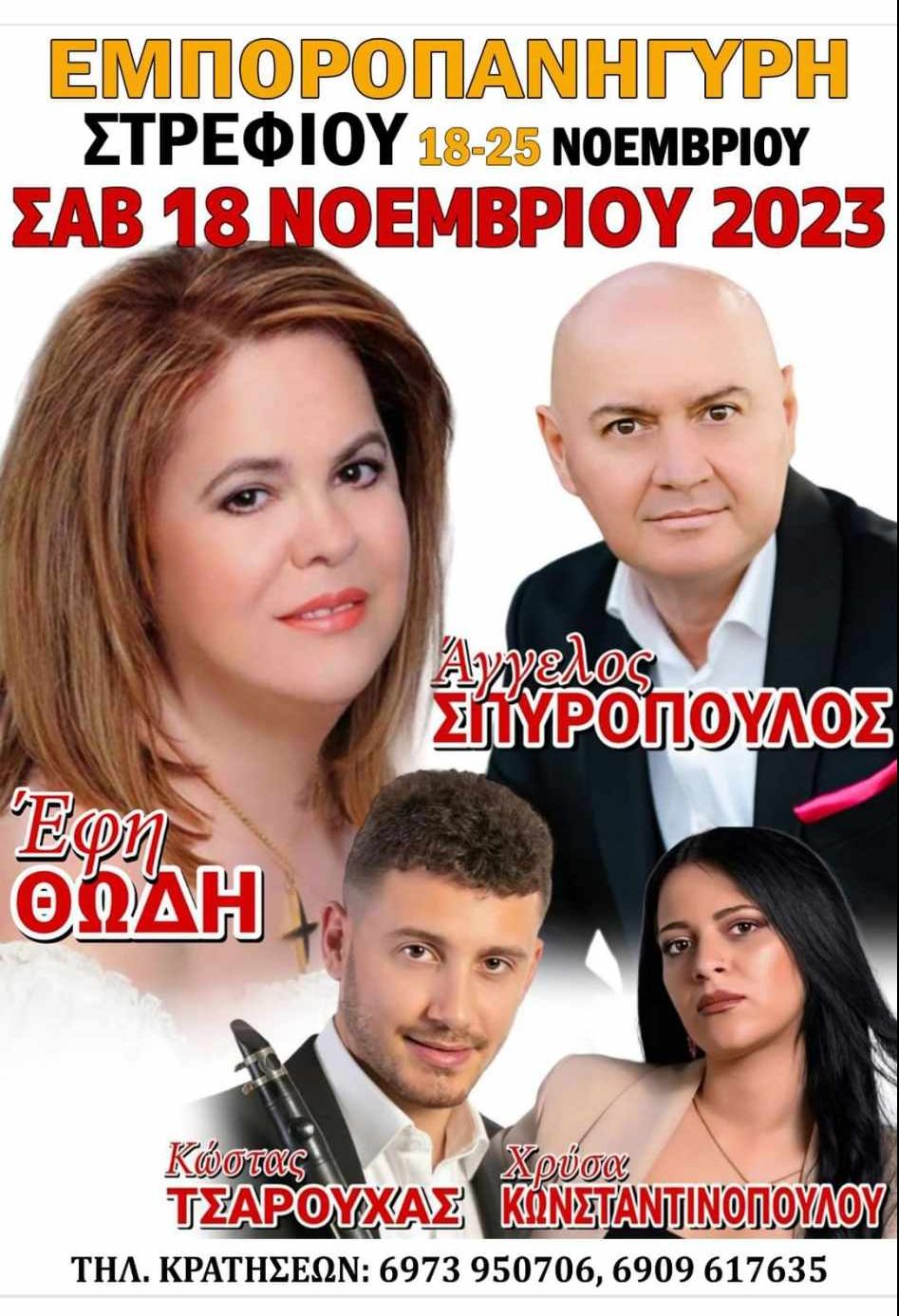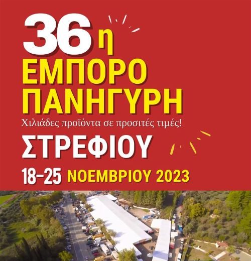 Από τις 18 έως τις 25 Νοεμβρίου 2023 θα πραγματοποιηθεί φέτος η 36η Εμποροπανήγυρη Στρεφίου, στον γνωστό υπαίθριο εκθεσιακό χώρο στην Κοινότητα Στρεφίου του Δήμου Αρχαίας Ολυμπίας.