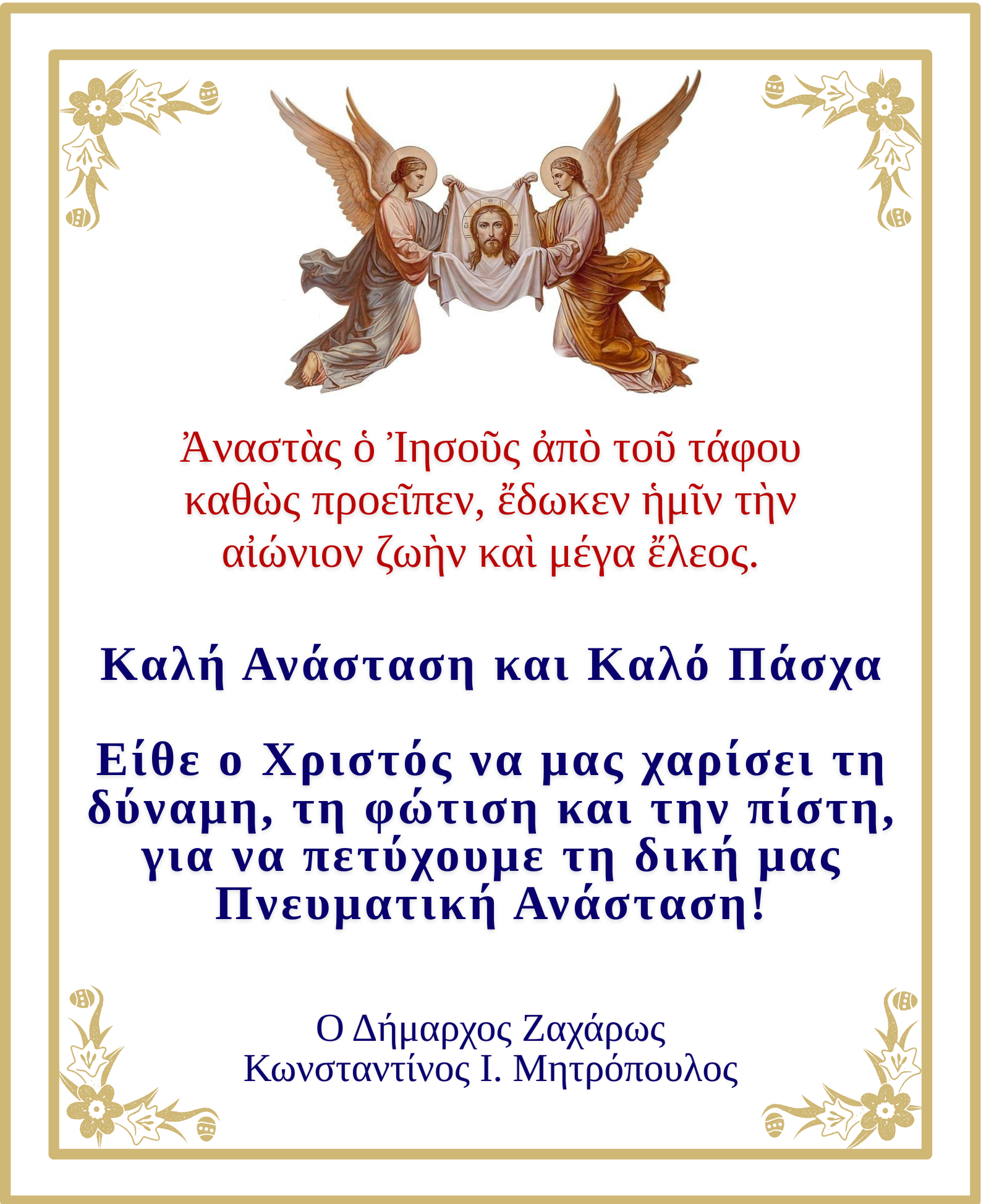 Ευχές από τον Δήμαρχο Ζαχάρως Κ. Μητρόπουλο