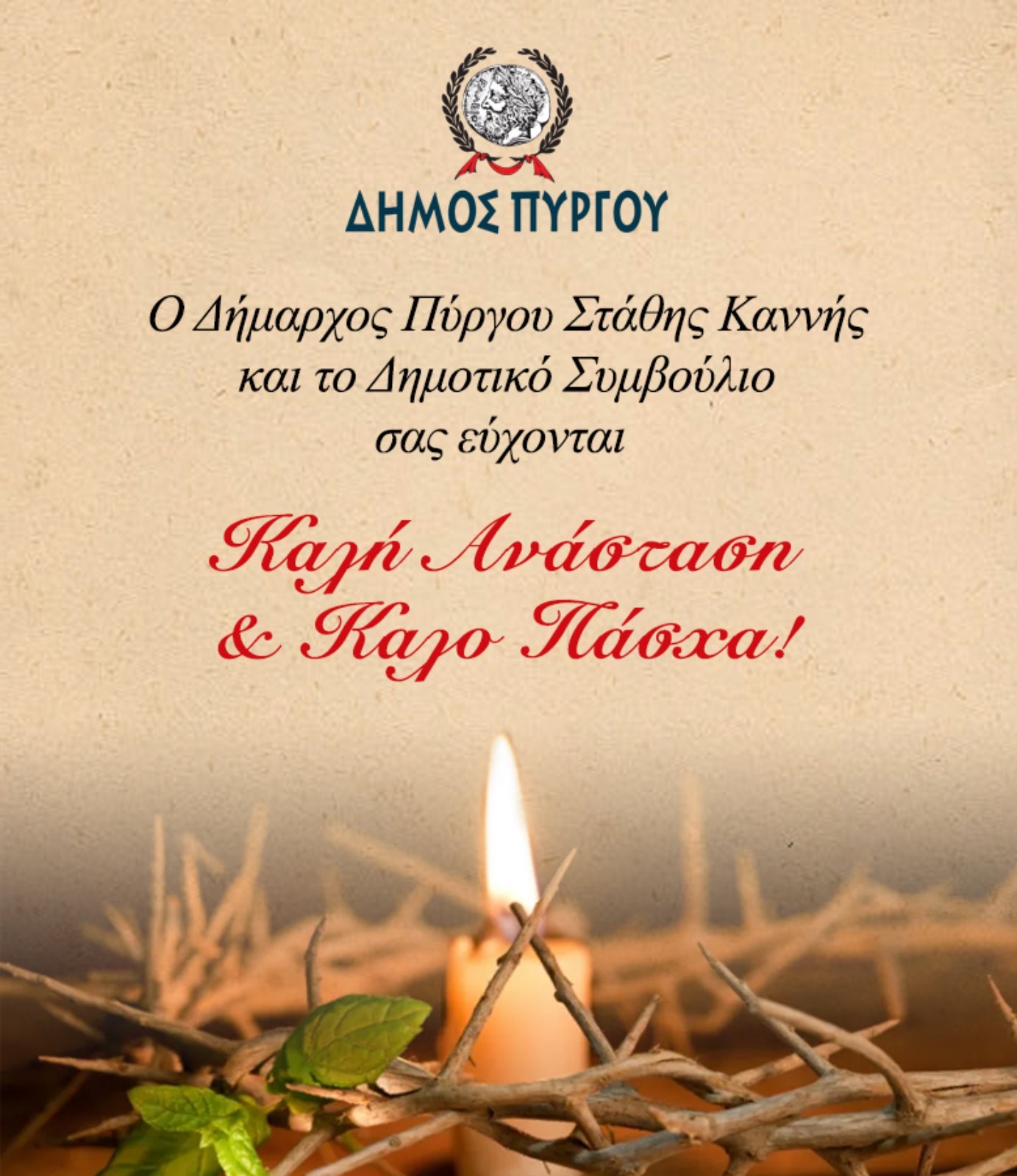 Δήμαρχος Ήλιδας Χ. Χριστοδουλόπουλος: Καλή Ανάσταση καλό Πάσχα