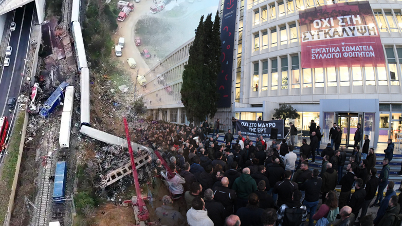 Η παράσταση διαμαρτυρίας γίνεται με αφορμή την υπόθεση των Τεμπών και μετά τις καταγγελίες για ελλιπή κάλυψη από την ΕΡΤ των μεγάλων συλλαλητηρίων σε όλη την Ελλάδα την περασμένη Κυριακή, 26 Ιανουαρίου.