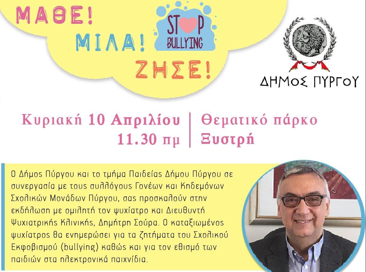 Ο Δήμος Πύργου και το τμήμα Παιδείας, διοργανώνει μια πολύ ενδιαφέρουσα
